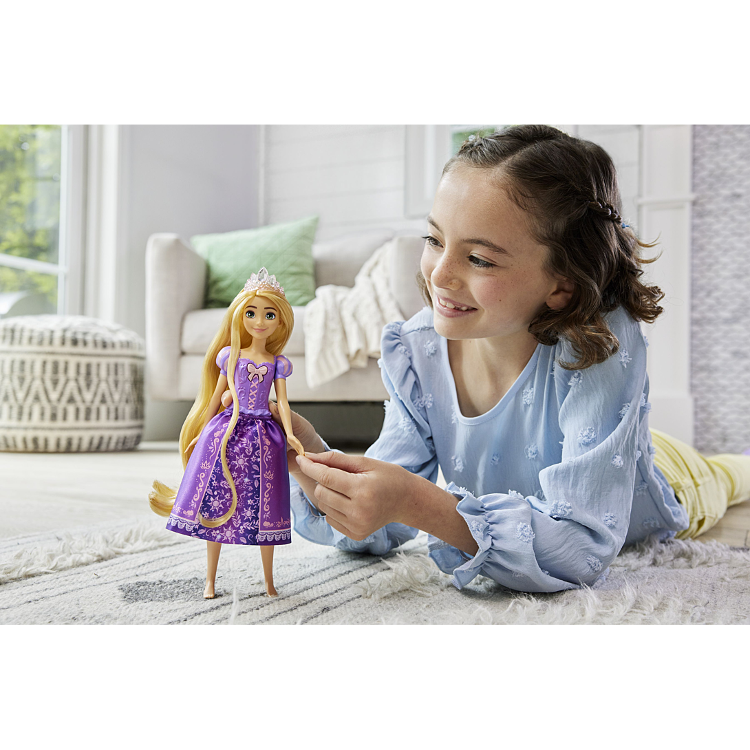 | Plus produit | Inspirée du personnage principal du célèbre film danimation Disney, cette poupée Raiponce est prête à vivre une journée extraordinaire !\nLes enfants nont quà appuyer sur le nud papillon rose de la poupée Raiponce pour quelle se mette à chanter un extrait de 30 secondes de la chanson phare du film : « When Will My Life Begin? »\nLa poupée Raiponce articulée porte sa tenue emblématique composée dune jupe souple amovible et possède de longs cheveux à coiffer !\nUne excellente idée de cadeau pour les enfants qui veulent recréer les meilleurs moments du film ou imaginer leurs propres histoires avec Raiponce !\nLes fans peuvent collectionner toutes les poupées chantantes Disney pour encore plus daventures musicales ! Articles vendus séparément. Certains produits peuvent ne pas être commercialisés. |