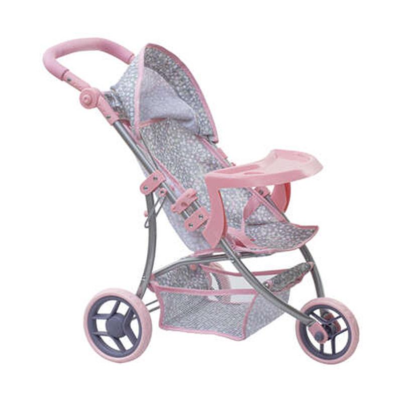 Promènes ton poupon partout avec toi avec la poussette 3 roues avec tablette pour poupon au look super cool avec son tissu imprimé couleur grise. Pratique, elle se replie facilement après utilisation et dispose d'un harnais de sécurité pour enfant.