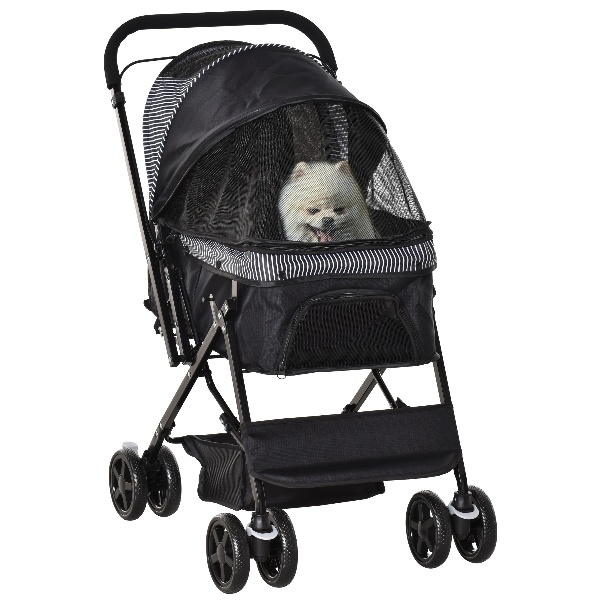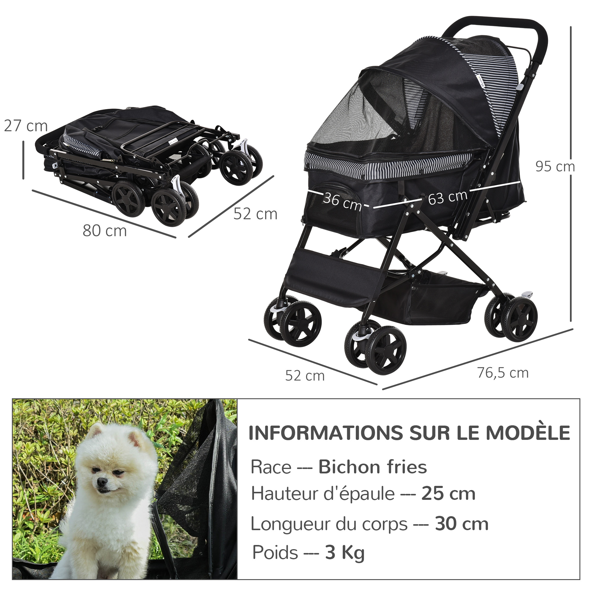 | Libellé | Poussette buggy pliable chien chat panier et sac de rangement attaches sécurité housse réglable poignée réglable acier Oxford noir |
