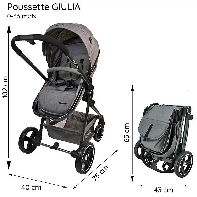 | Libellé | Poussette combinée Giulia moderne et maniable |