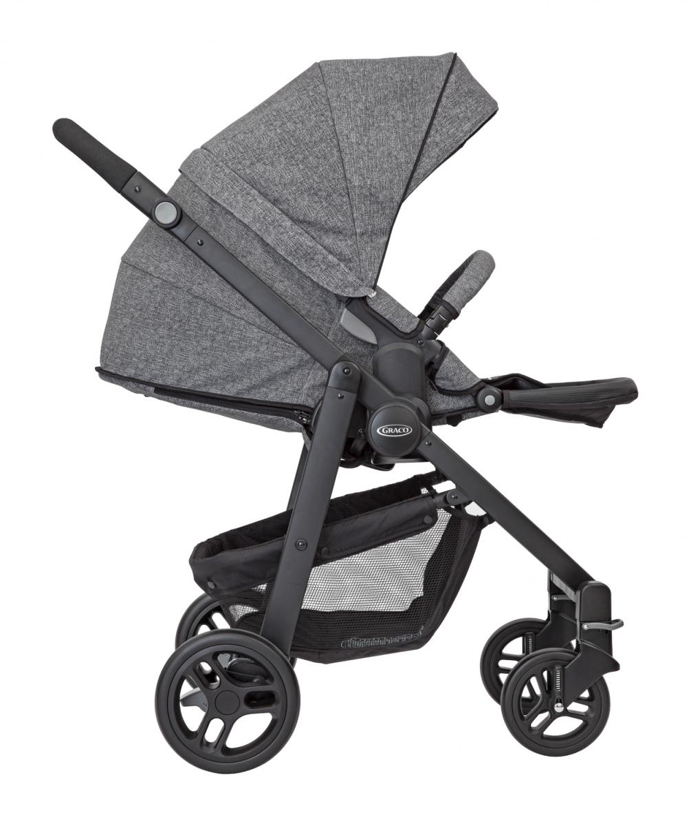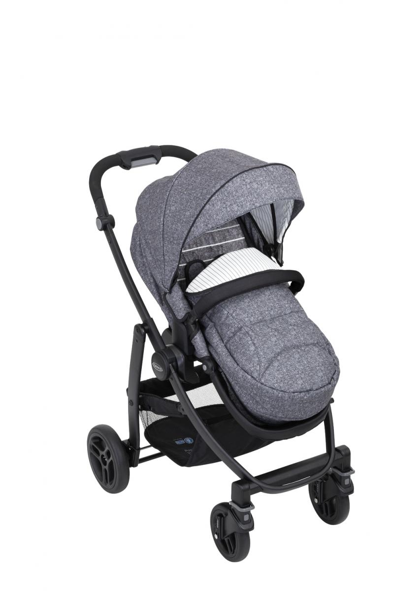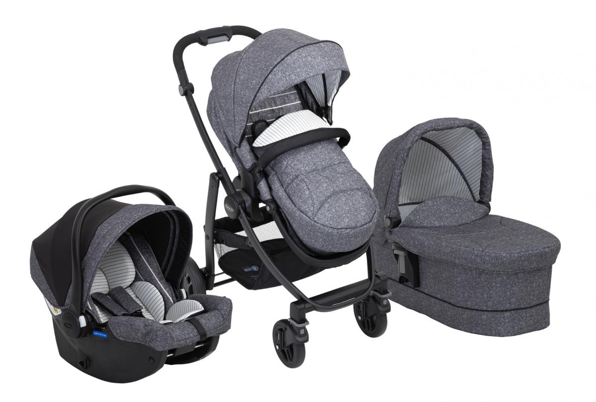 Graco Evo Trio est le pack complet, comme fait pour un style de vie moderne. Elle convient dès la naissance et jusqu'à environ trois ans (15 kg) et offre du confort grâce à son dossier abaissable à plat, ce qui vous permet de positionner votre bébé dans les deux sens de la marche. Il est équipé d'une poignée réglable en hauteur, d'un repose-jambes et d'un mécanisme de pliage confortable à une main. Ce pack comprend une chancelière, une capote de pluie, la coque i-Size SnugEssentials et la nacelle Graco Evo.