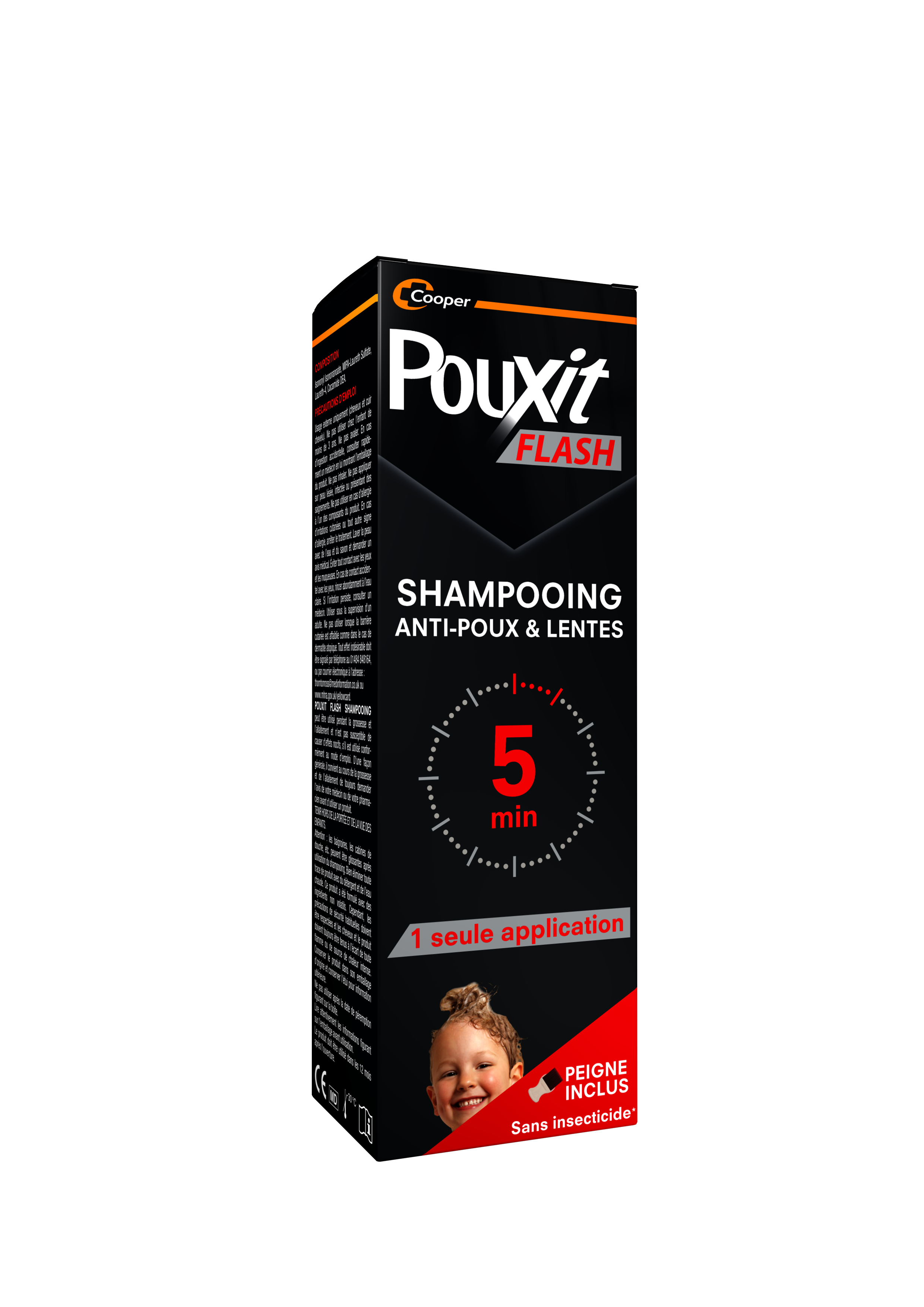 DITES ADIEU AUX POUX EN 5 MINUTES AVEC UN PRODUIT 2-EN-1 : Pouxit Flash Shampooing est un traitement sans insecticide (2) qui tue rapidement les poux et les lentes (1) par action mécanique et qui nettoie les cheveux grâce à ses propriétés lavantes et moussantes. Pouxit Flash Shampooing peut s’utiliser dès l’âge de 3 ans ainsi que chez les femmes enceintes ou allaitantes. Il convient à tous les types de cheveux. 1 flacon de 100 ml permet de traiter jusqu’à 4 personnes infestées.