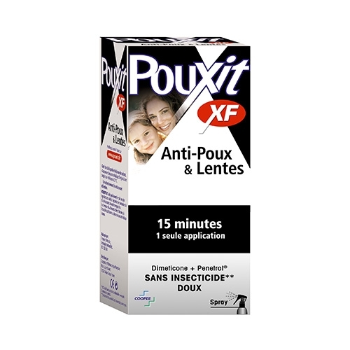 Pouxit XF, le traitement 100% efficace1. Avec sa formule brevetée et renforcée au Penetrol®, Pouxit XF suractive son action contre les lentes et éradique poux, larves et lentes en 15 minutes1. Plus besoin de deuxième application ou d’une nuit complète de pose ! 1. Etudes cliniques réalisées par IF Burgess de 2009 à 2013 au Centre Médical d'Entomologie de Cambridge