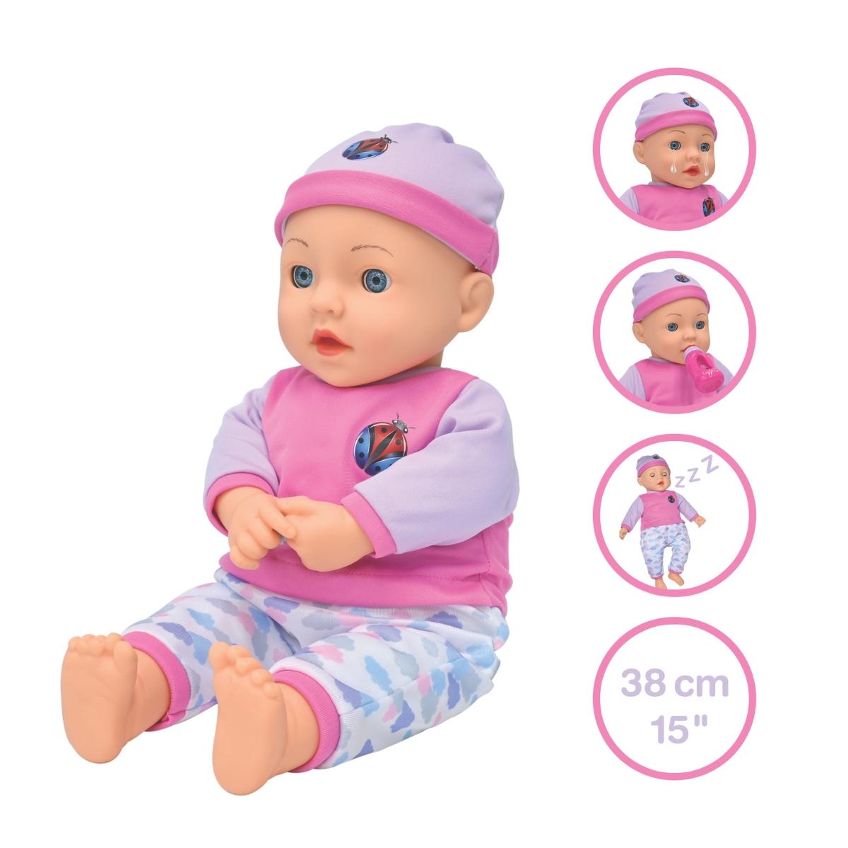 "• Lorsque cette poupée bébé pleure dans son lit, la prendre dans ses bras arrêtera instantanément ses larmes et lui apportera du réconfort. • Grâce à un mouvement de succion réaliste, elle produit des sons comme si elle buvait du lait, ce qui ajoute à l'expérience de jeu immersive. • Après un repas, son ventre se soulève et s'abaisse doucement, imitant le mouvement de la respiration pour un effet plus vrai que nature. • Regardez-la cligner des yeux, créant ainsi une interaction attachante et réaliste. • Pour une apparence vraiment réaliste, sa joue est traitée contre les UV ! "