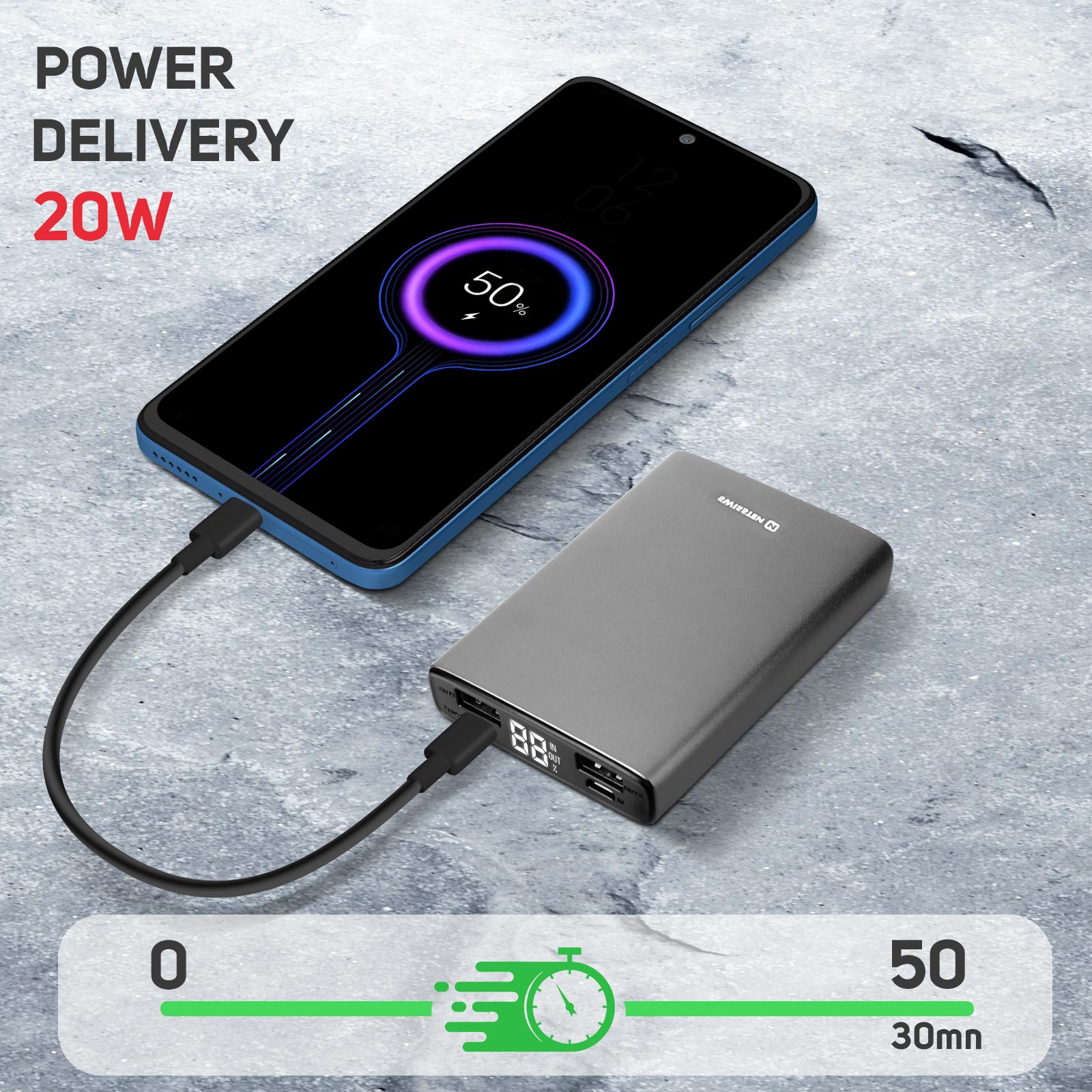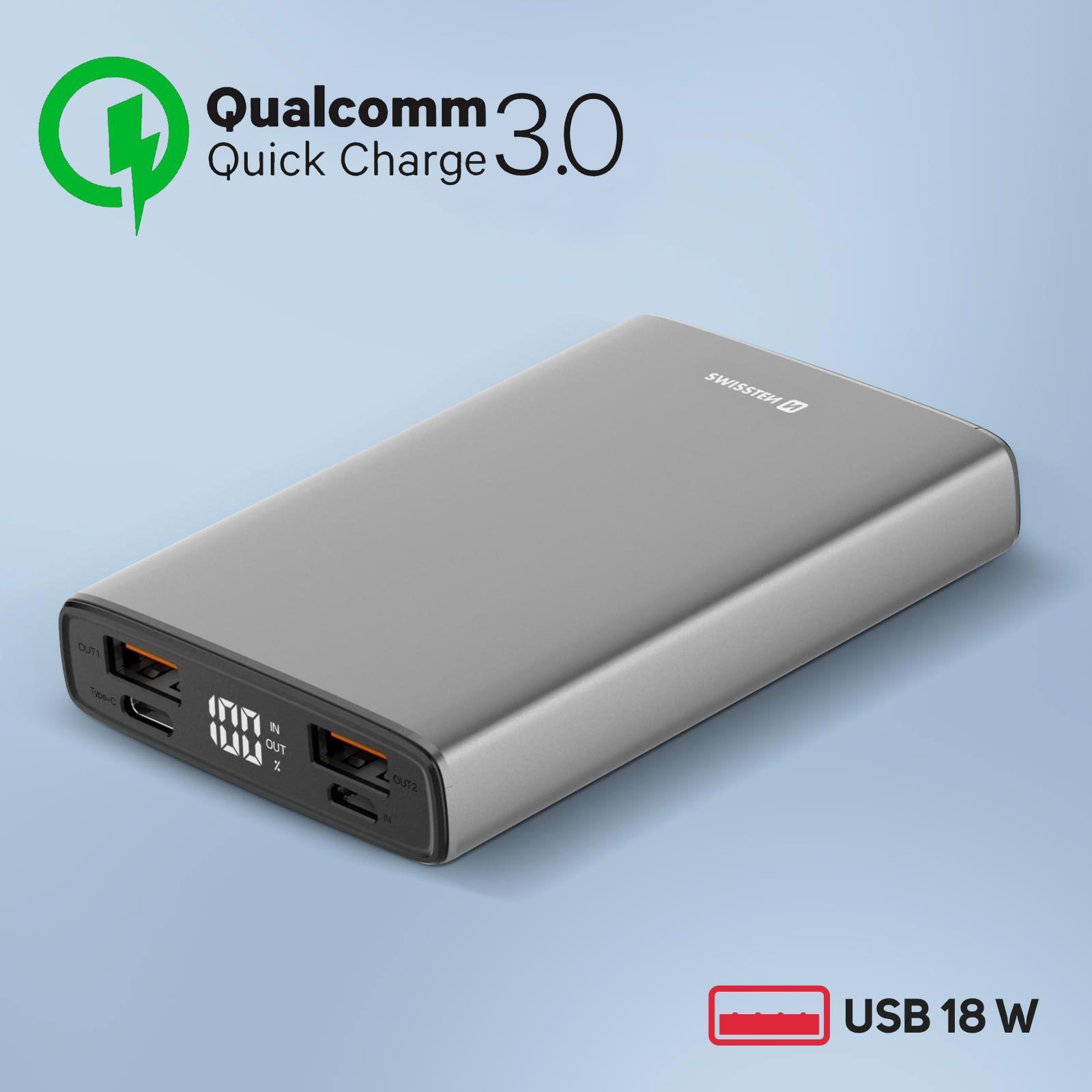 Powerbank 20W USB-C Power Delivery et USB Quick Charge 10000mAh Swissten Gris