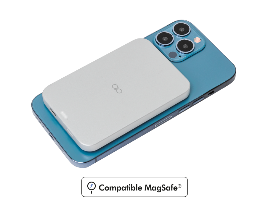 Batterie de secours Induction 5000 mAh Compatible MagSafe Blanc Force Power Matière : Aluminium Dimensions : Universel Couleur : Gris Contenu du pack : 1 Compatible MagSafe + Câble USB C/USB C Spécificité : 5000mAh - Compatible MagSafe - Induction 15W Connectique entrée : Induction Connectique sortie : Garanti à vie Port(s) : Apple Puissance : Induction 15W