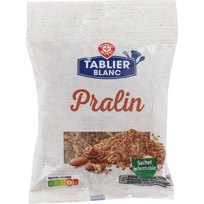 AMANDES ET NOISETTES TORRÉFIÉES, CARAMÉLISÉES ET BROYÉES TABLIER BLANC