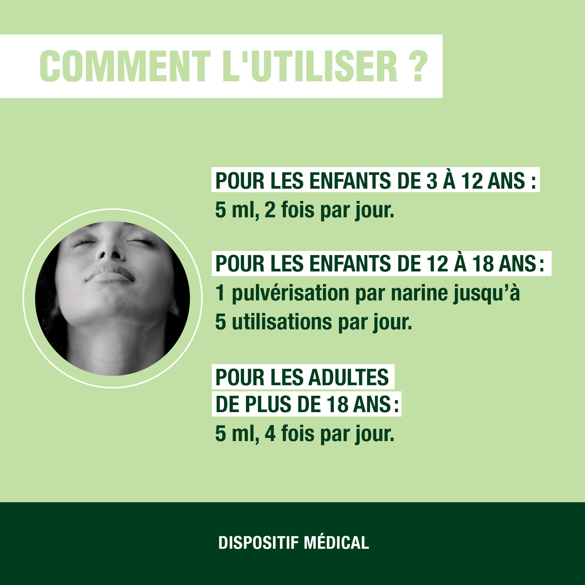 Prendre 5 ml (ou une cuillère à café) 3 fois par jour durant 5 à 7 jours.