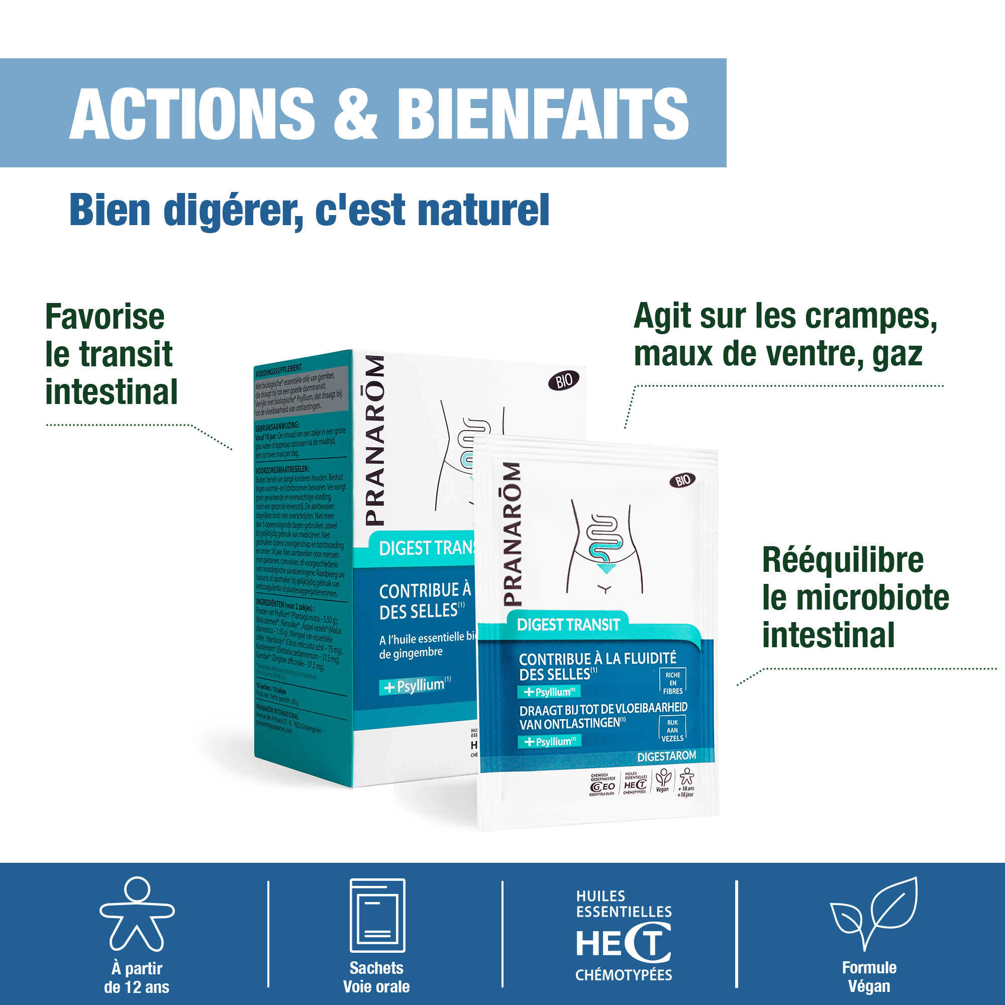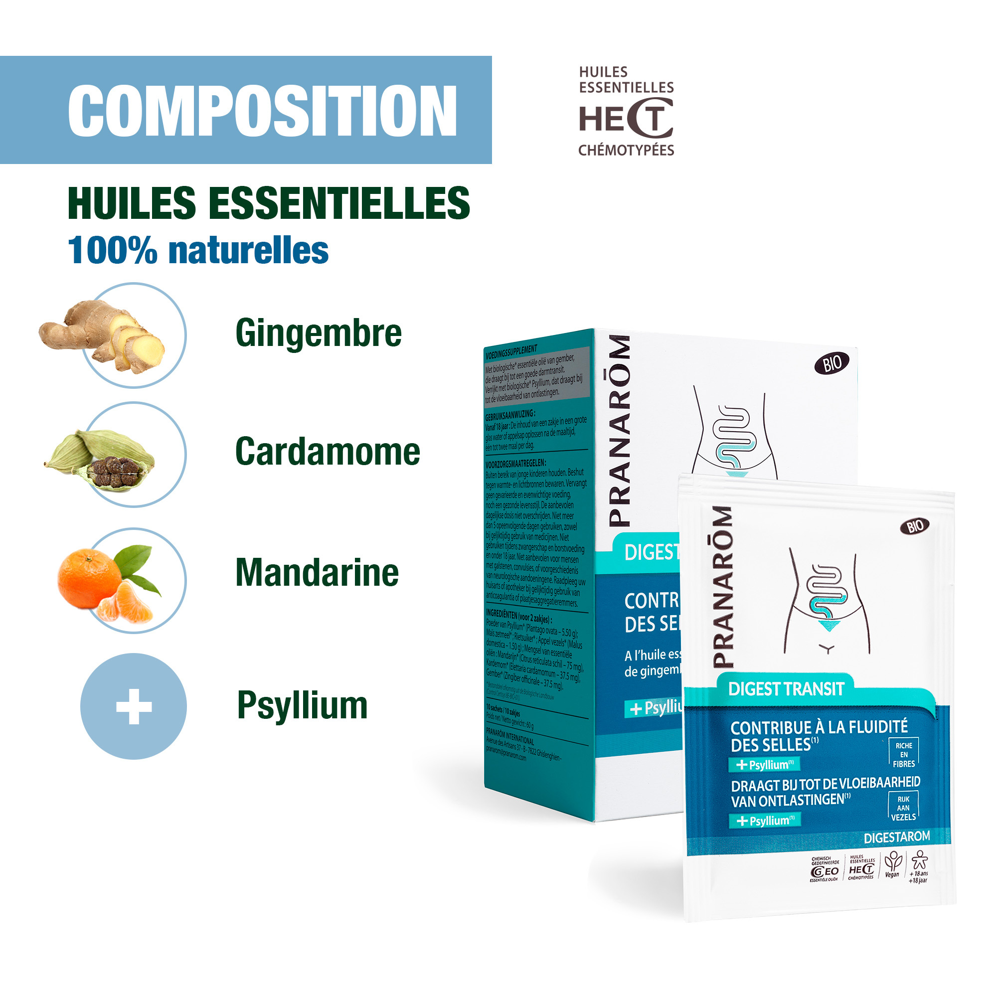 | Libellé | Pranarom - Digestarom - Digest Transit - Fluidité Des Selles - Huile Essentielle De Gingembre BIO et Psyllium - Vegan - 10 Sachets |