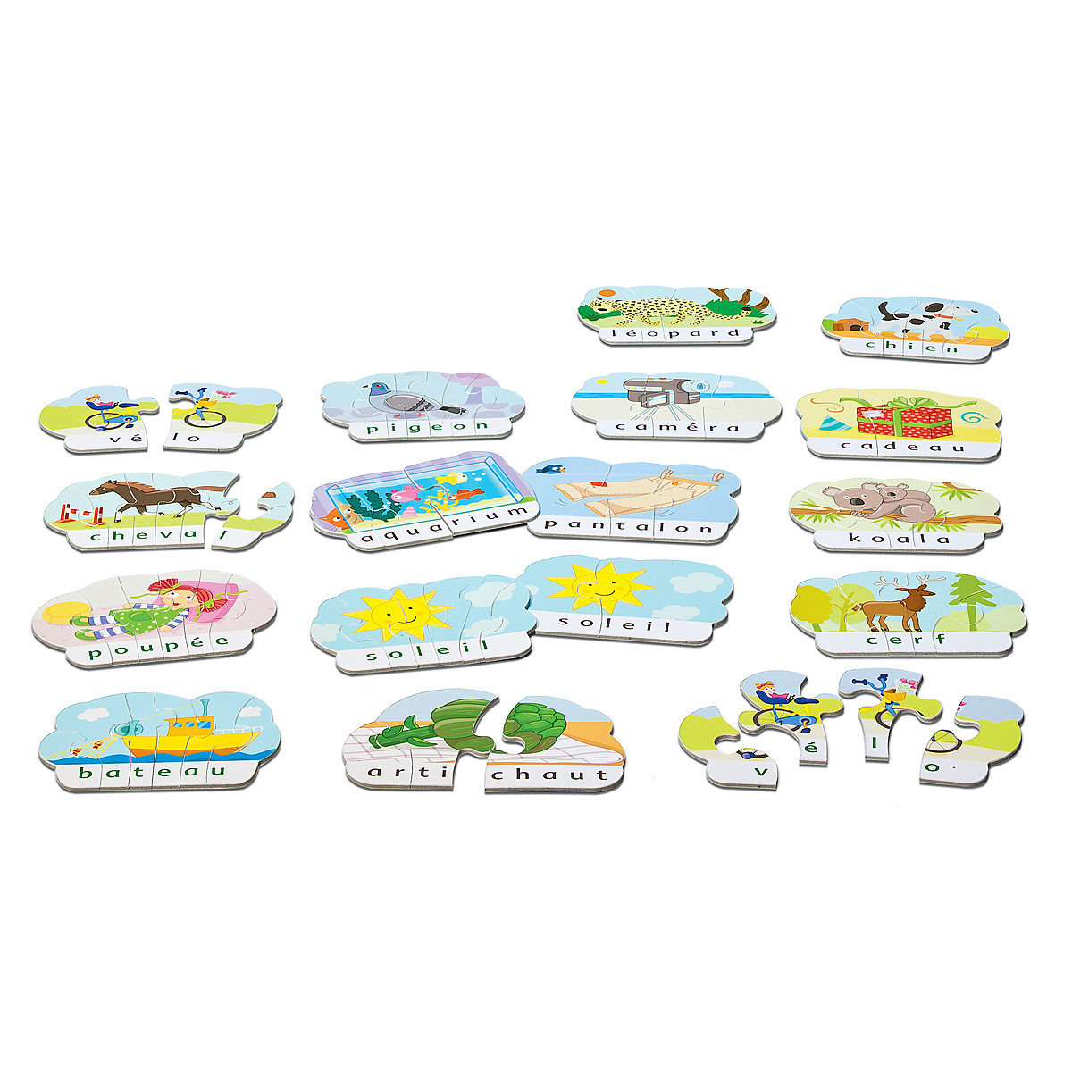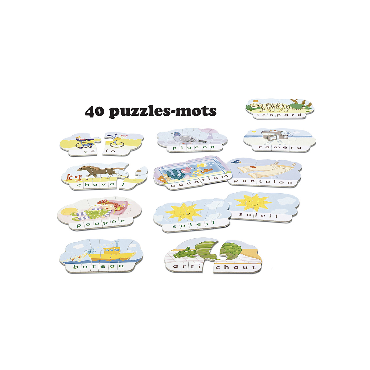 | La boîte contient | 40 puzzles : 20 mots-syllabes et 20 mots-lettres |