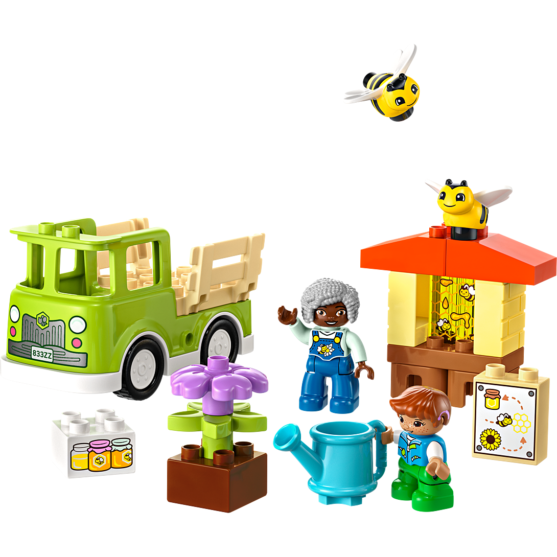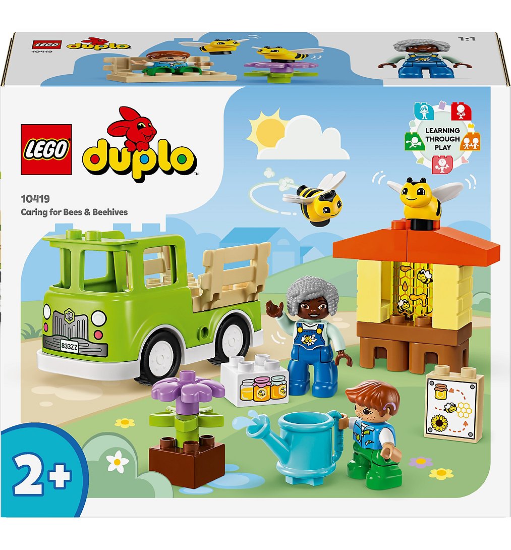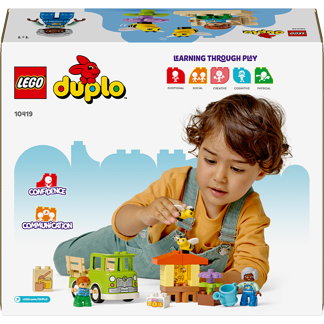 Apportez un peu de piquant aux séances de jeu avec le jouet d'apprentissage LEGO DUPLO Prendre Soin des Abeilles et des Ruches (10419) pour les enfants de 2 ans et plus. Ce jouet nature aide les tout-petits à apprendre à prendre soin des animaux et de la nature tout en vivant de manière durable. Ce jouet nature interactif pour les enfants est livré avec 2 adorables figurines d'abeilles, une ruche avec une brique en forme de rayon de miel, des éléments de fleurs et un camion conduisible. Il apprend aux enfants d'âge préscolaire que lorsque l'on prend soin des plantes, les abeilles obtiennent la nourriture dont elles ont besoin pour produire le miel que nous aimons manger. Les tout-petits pratiquent leurs compétences motrices fines en construisant les tiges de fleurs du jouet pour les faire pousser. Ils passeront des heures à s'amuser en jouant à imaginer les abeilles du jouet se nourrir du nectar, puis revenir à la ruche pour produire du miel. Cet ensemble est également livré avec 2 figurines LEGO DUPLO - les tout-petits les aident à collecter le miel, à le charger dans le camion-jouet et à le transporter sur le marché. Les cadeaux de jouets de développement LEGO DUPLO permettent aux tout-petits de partager des moments d'apprentissage amusants avec leurs parents et leurs baby-sitters.
