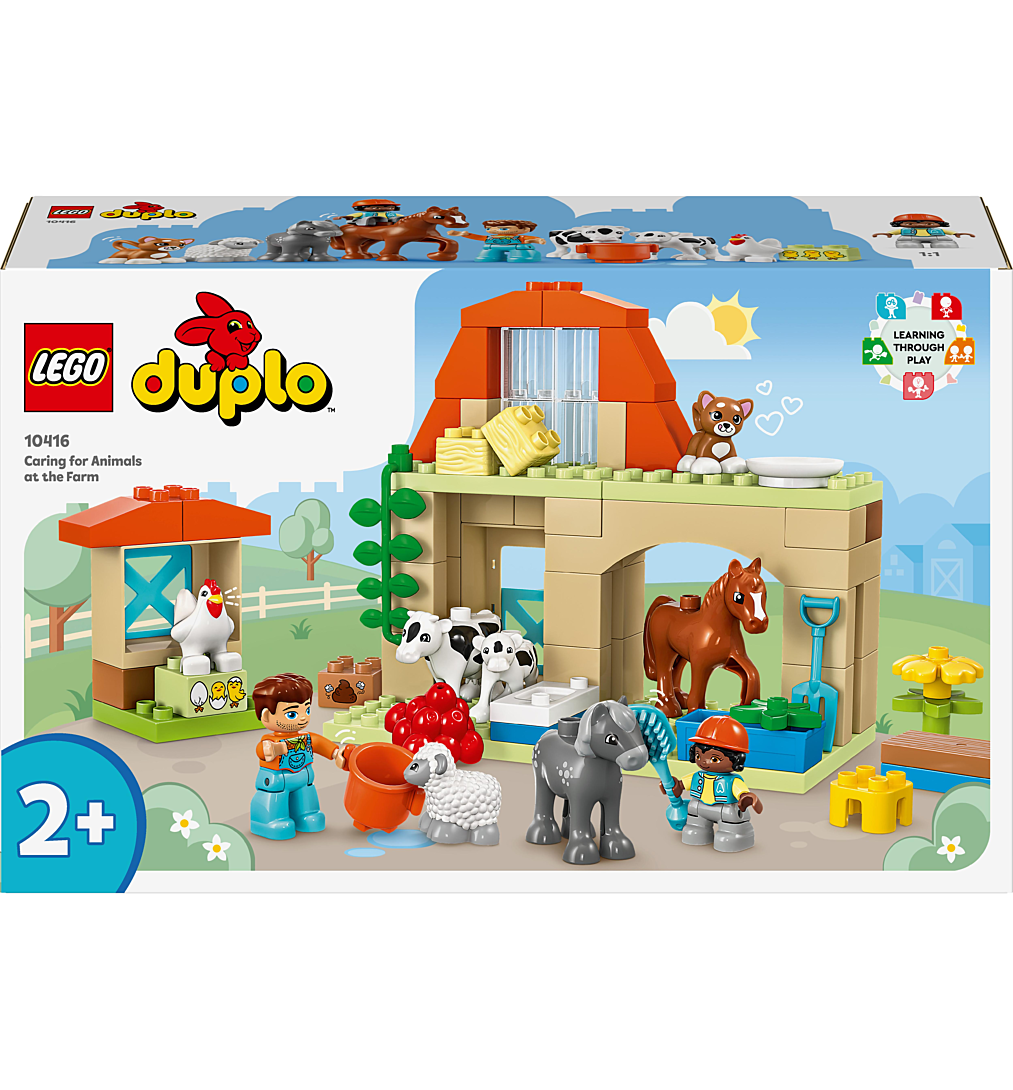 Créez des moments de jeu inoubliable avec le jouet d'apprentissage LEGO DUPLO Prendre Soin des Animaux à la Ferme (10416) pour les enfants âgés de 2 ans et plus. Ce jouet d'apprentissage pour les tout-petits est livré avec 8 figurines d'animaux LEGO DUPLO - notamment des figurines de cheval, de mouton, de vache et de poule - pour ravir tous les tout-petits qui aiment les jouets de jeu de rôle réalistes et se faire de nouveaux amis de la ferme. Ce jouet de ferme riche en fonctionnalités immerge les familles dans un jeu de soin, où les adultes montrent à leur enfant d'âge préscolaire comment nourrir et prendre soin des animaux. Le fermier dans la ferme aide l'enfant à laver les pommes pour les donner à la vache et à son veau. Dans le poulailler, la poule prend soin de ses poussins. Les tout-petits peuvent également imaginer monter sur la figurine de cheval et lui donner du foin dans l'écurie. Ce jouet éducatif se compose de briques et de pièces colorées conçues pour captiver les tout-petits pendant qu'ils explorent et assemblent, tout en développant leurs compétences en résolution de problèmes et leurs compétences motrices fines.