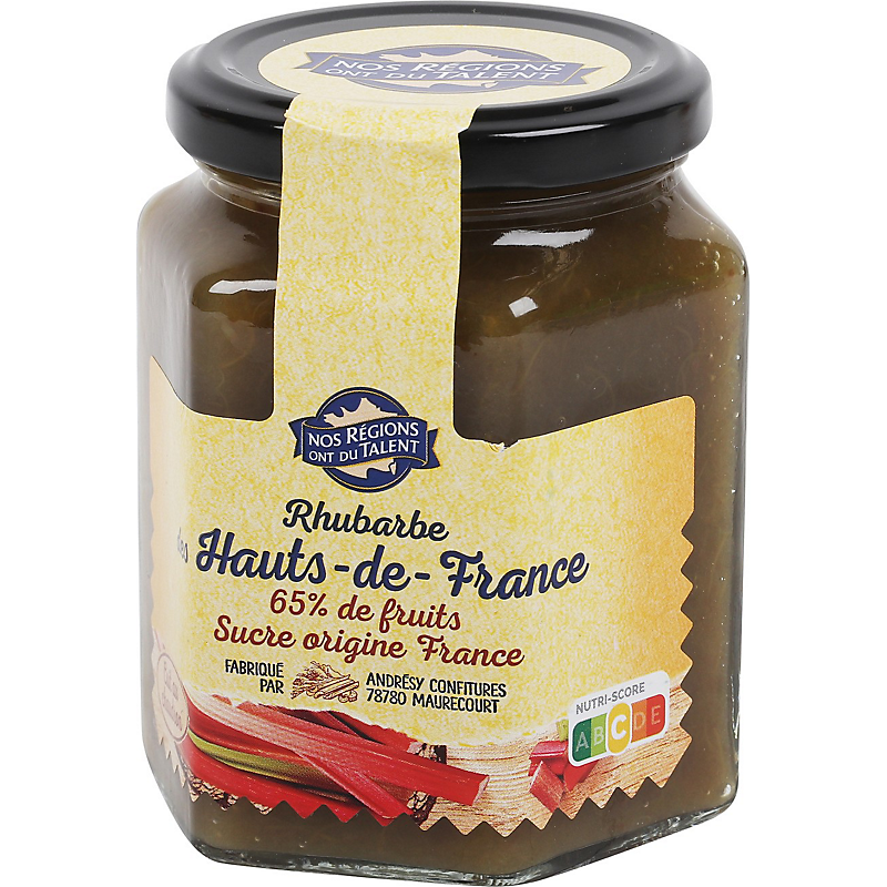 | Origine des principaux ingrédients | RHUBARBE ORIGINE : HAUTS DE FRANCE, SUCRE ORIGINE : FRANCE |