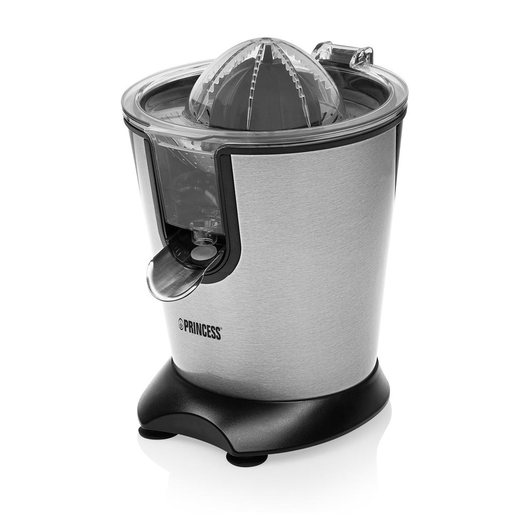 Profitez d’un jus d'orange fraîchement pressé tous les matins grâce au presse-agrumes Princess 201850 Easy Juicer. Ce presse-agrumes de haute qualité a un puissant moteur de 160 W pour un flux optimal de jus. Le cône de forme innovante et le couvercle de pressage font que tout le jus est bien pressé. Le presse-agrumes est idéal si vous aimez vous faire plaisir, à vous et à votre partenaire, avec un verre de jus frais. Cône de forme innovante pour un rendement optimal Le cône spécial du presse-agrumes Princess Easy Juicer est adapté pour les agrumes petits et gros. De cette façon, vous n'aurez jamais à échanger de cône si vous souhaitez associer le jus d'orange au jus de citron vert. Le cône fait une rotation à gauche et à droite pour un rendement optimal. Puissant moteur de 160 W Extrayez le jus de façon rapide et facile grâce au moteur de 160 W du presse-agrumes Princess Easy Juicer. Dès que vous appuyez un agrume sur le cône, le moteur démarre automatiquement la rotation pour vous permettre de commencer immédiatement à extraire le jus. Utilisez le couvercle transparent extra robuste pour presser le jus de l'agrume coupé en deux sur le cône, tout en gardant les mains propres. Il sert aussi de couvercle anti-poussière lorsque le presse-agrumes n'est pas utilisé. Facile à nettoyer Toutes les pièces amovibles du presse-agrumes Princess Easy Citrus Juicer peuvent passer au lave-vaisselle, le nettoyage après l'extraction du jus est donc très facile. En outre, le presse-agrumes a un système anti-goutte pour vous permettre d'arrêter l'écoulement de jus afin de changer les verres et vous n'aurez plus à vous soucier des résidus collants sur votre plan de travail. Contenu de l'emballage : Presse-agrumes Princess Easy Citrus Juicer, cône universel, filtre à pulpe, conteneur anti-goutte, couvercle transparent, mode d’emploi