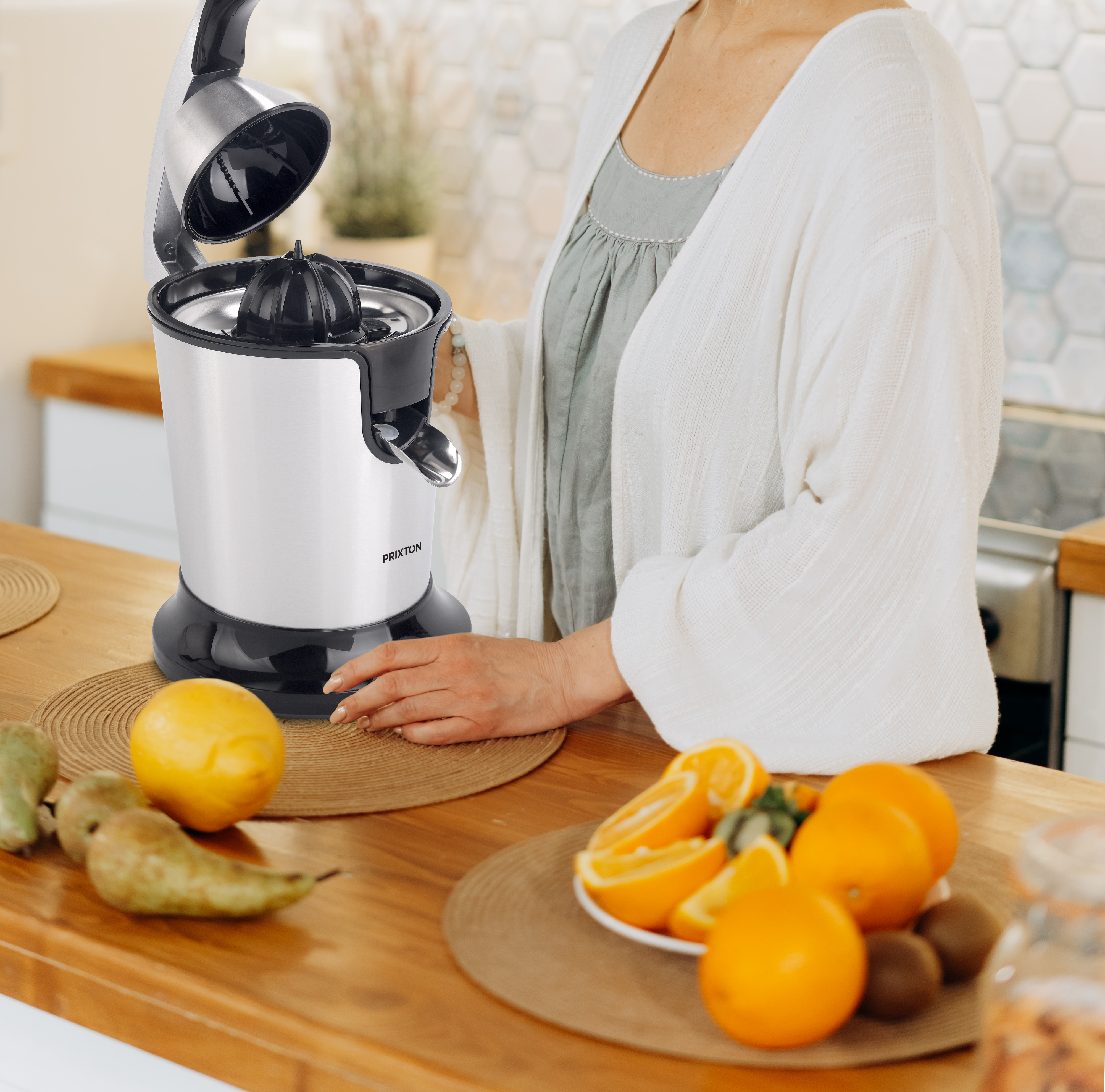 - Presse-agrumes avec une puissance de 300 W pour presser beaucoup plus rapidement et extraire plus de jus.