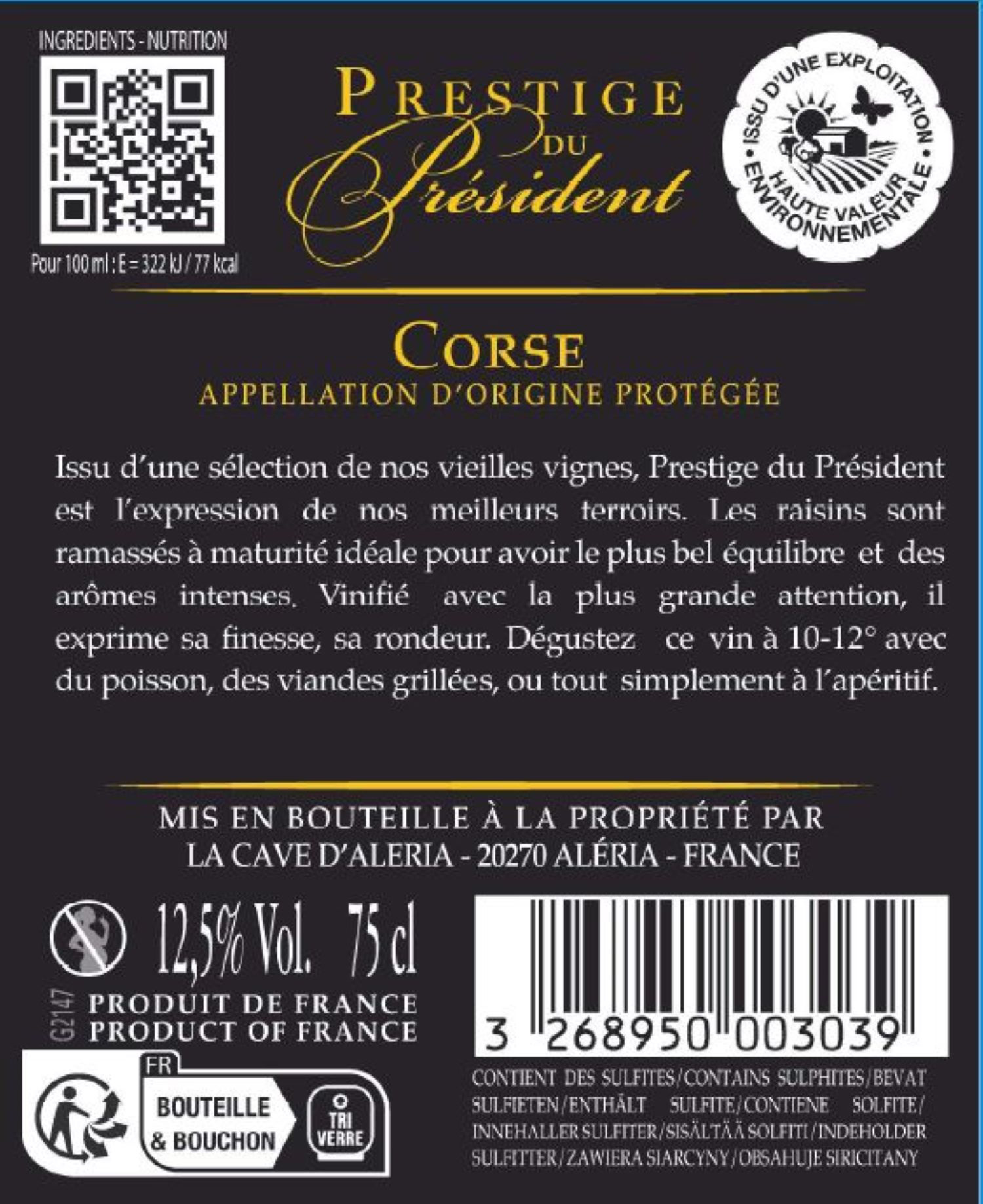 | Libellé | Prestige du président , 2024 - Vin de Corse ou Corse AOP - Rosé - 75 cl |