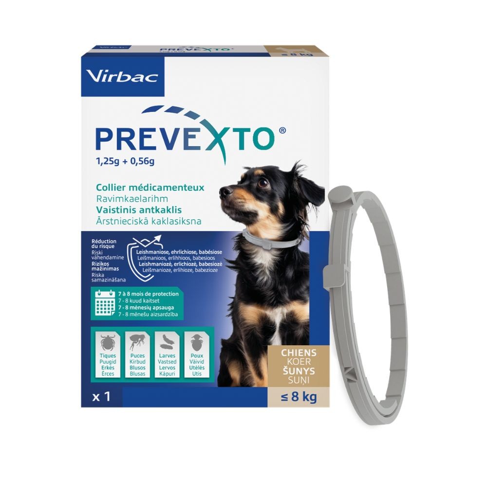 - Combien de temps protège le collier Prevexto® ? – Il offre une protection de 7 à 8 mois contre les puces et jusqu'à 8 mois contre les tiques.