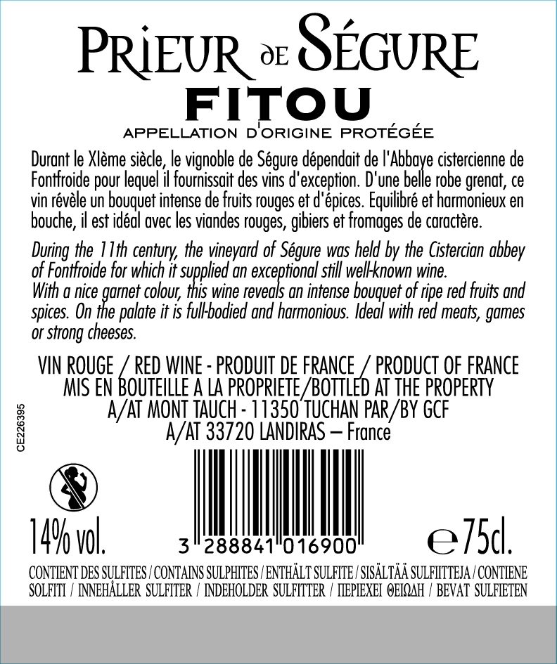 Libellé Prieur de Ségure, 2019 - Fitou AOP - Rouge - 75 cl