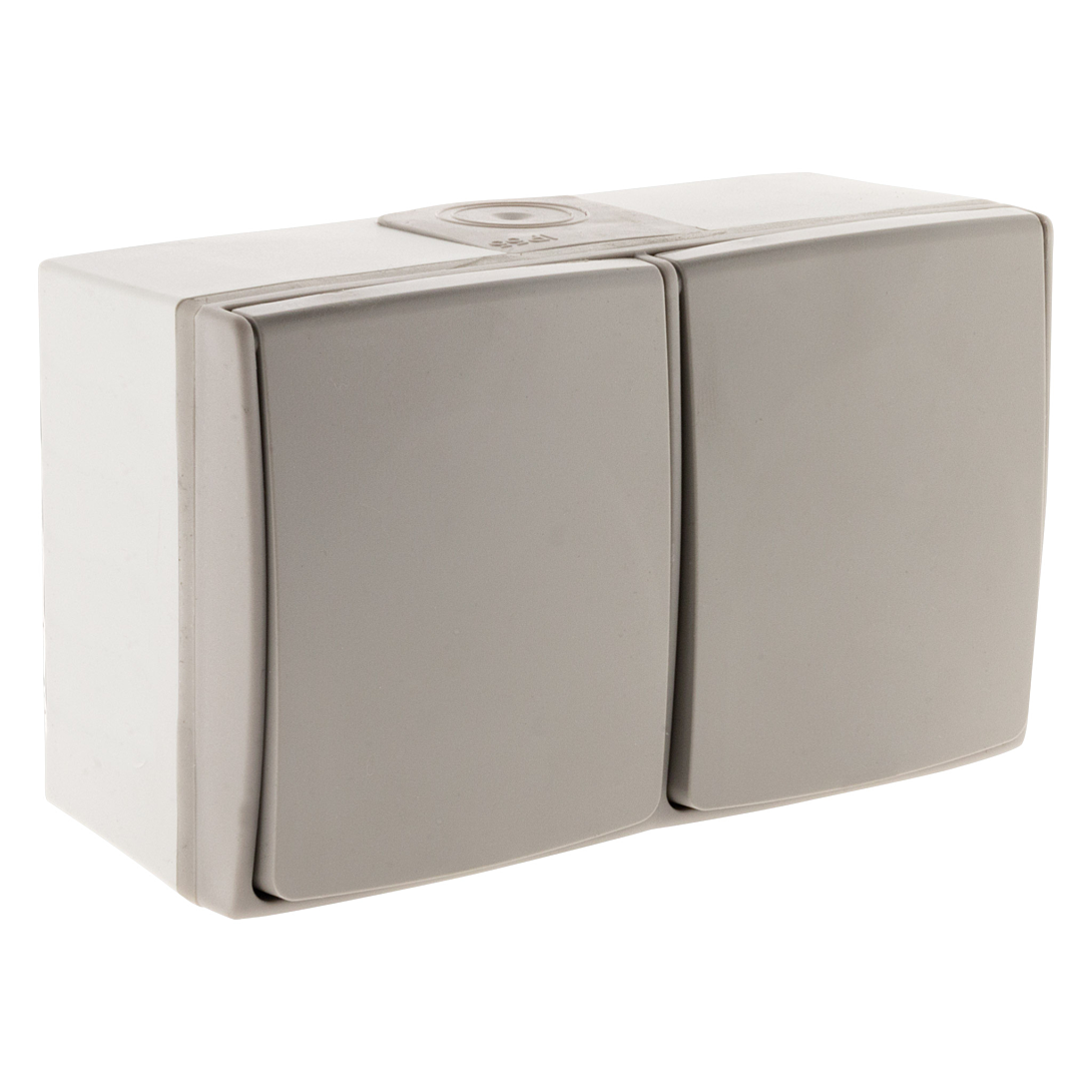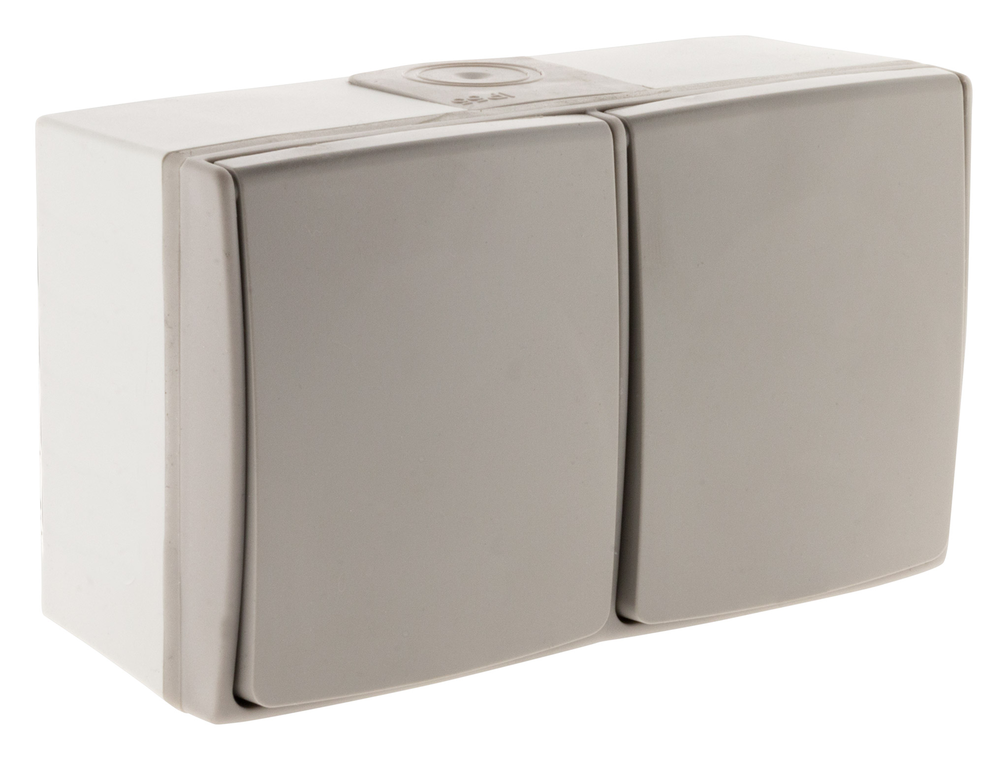 Double prise 2 pôles + terre coloris gris pose en saillie bornes automatiques étanche ip55 nf.