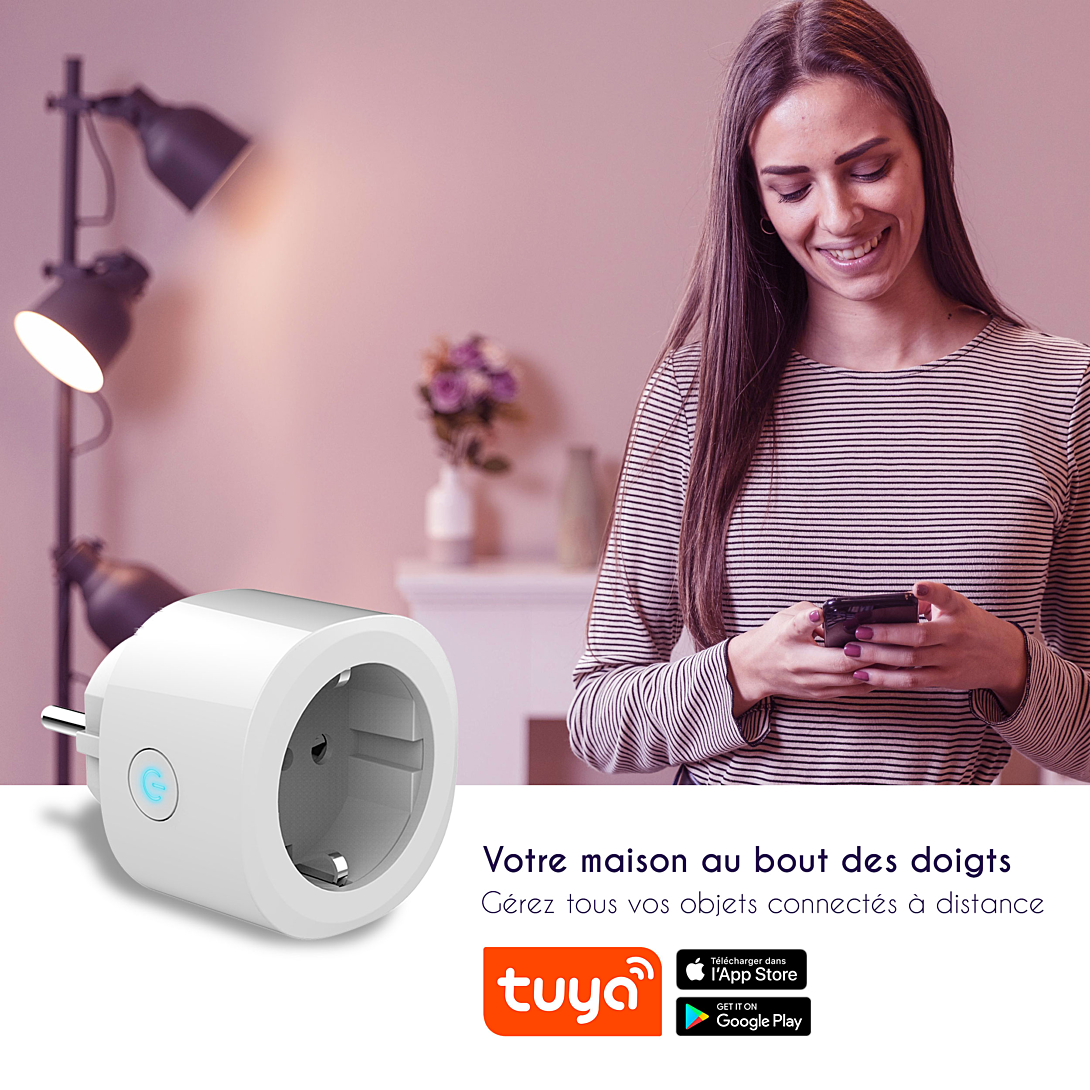Maîtrisez le branchement de tous vos produits, que vous soyez chez vous ou non ! Contrôlez vos objets grâce à Pluggy et à l’application Tuya Smart, téléchargeable sur Google Play et Apple Store. Il suffira d’appairer votre Pluggy en 3 simples étapes pour tout contrôler, même à distance. Vous pourrez également programmer les horaires d’utilisation de votre Pluggy pour qu’il s’adapte au mieux à votre quotidien !