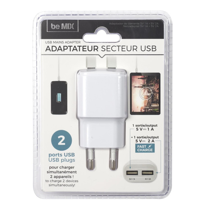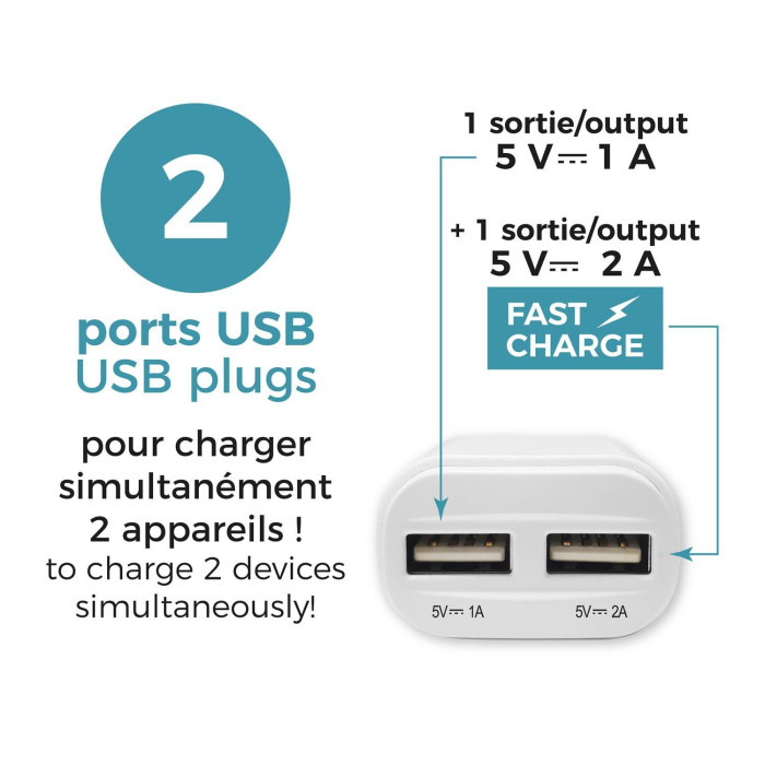 | Libellé | Prise Secteur Double Port USB "Plug" 8cm Blanc |