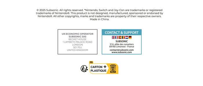 | Plus produit | Prenez le contrôle de la course avec le volant Subsonic Pro Kart Racer pour joycon compatible Switch 2 / Switch. Avec son design exclusif sport conçu pour les jeux de course comme Mario kart 8, Mario Kart World? vous éviterez aisément Bloups, Carapaces, Bananes? parsemés sur votre trajectoire pour foncer sur les Bill Balles et gagner la course haut la main !Le volant Pro Kart Racer est super pratique |