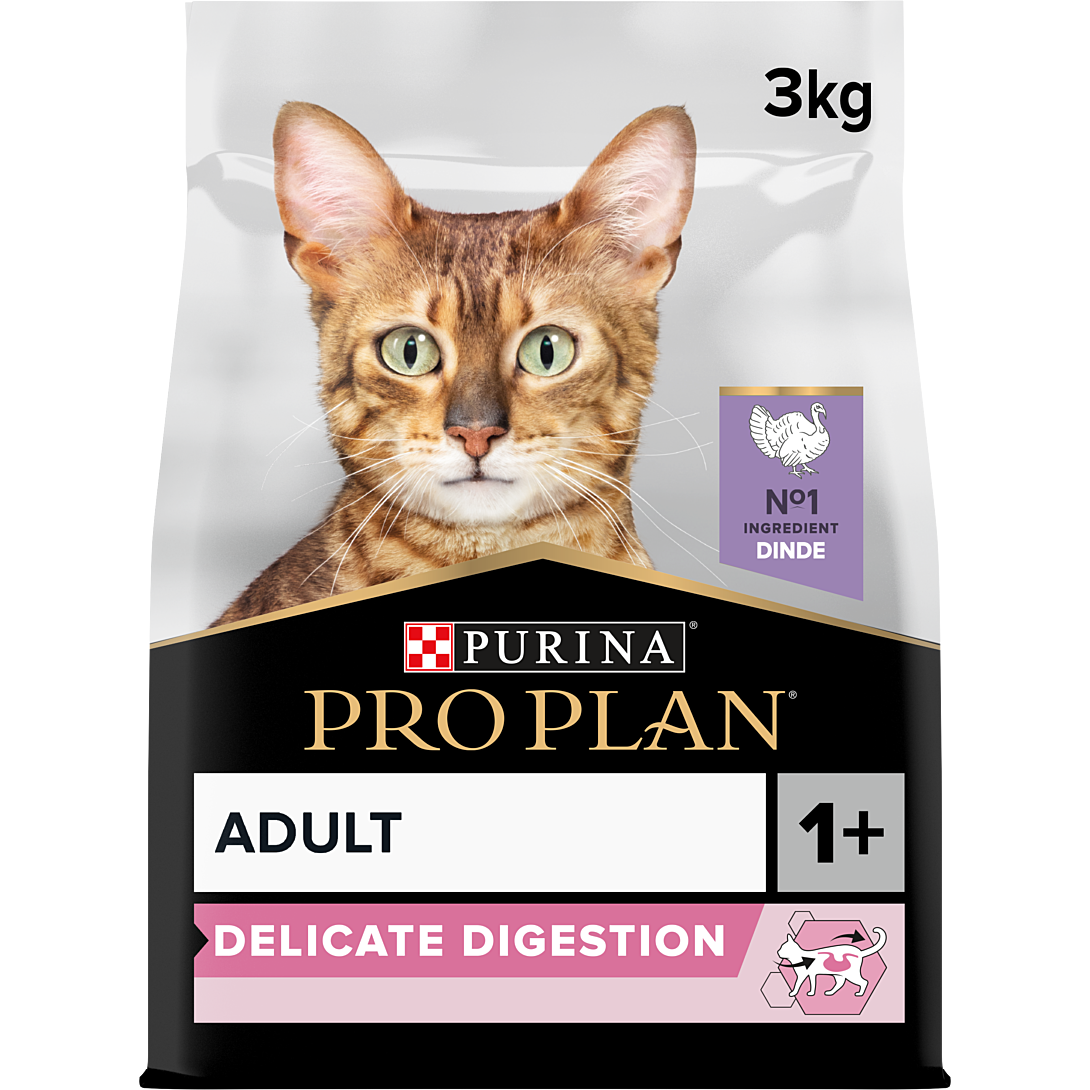 | Libellé | PRO PLAN Adult 1+ DELICATE DIGESTION Riche en Dinde - 3kg - Croquettes complètes pour chats adultes difficiles ou ayant une digestion sensible |