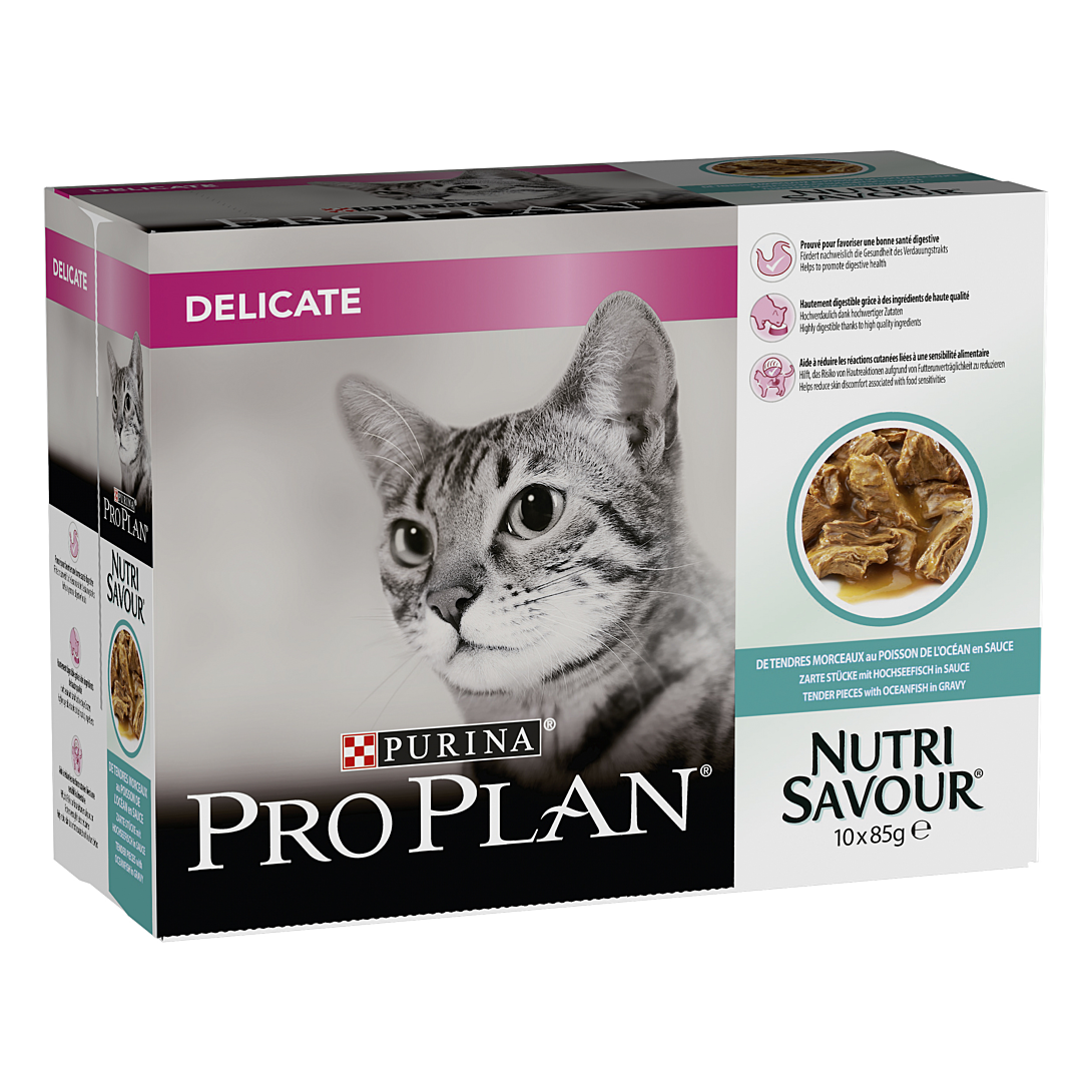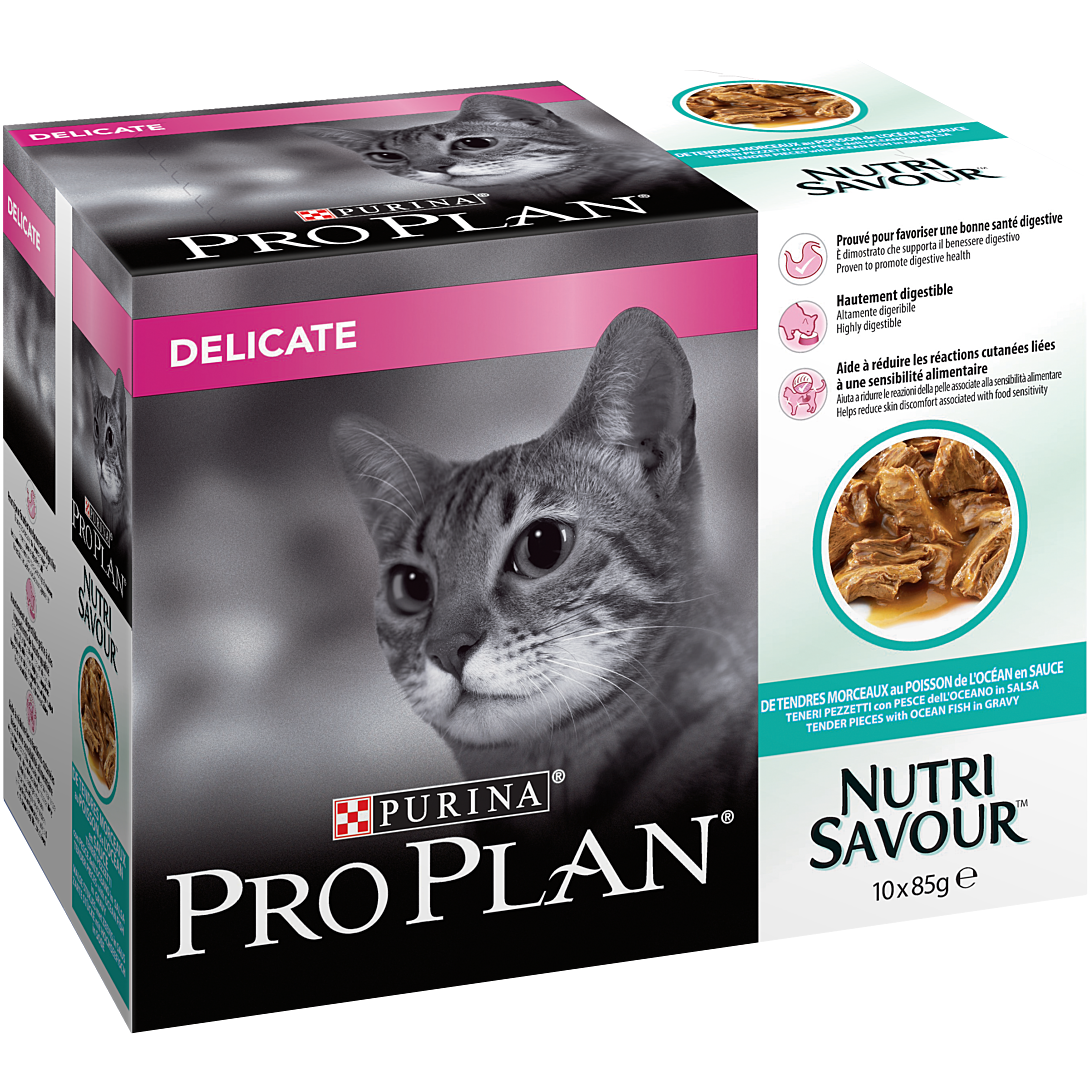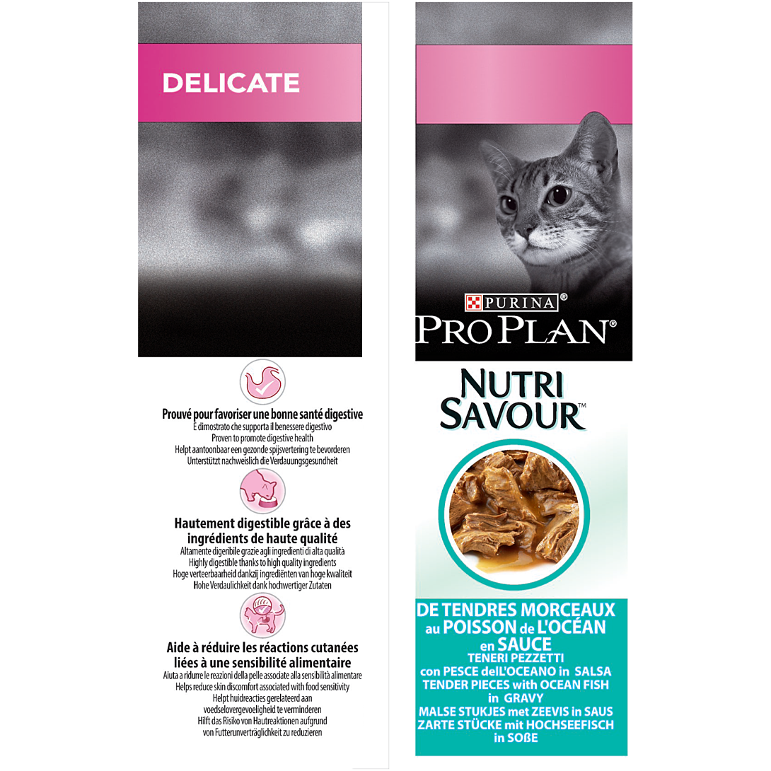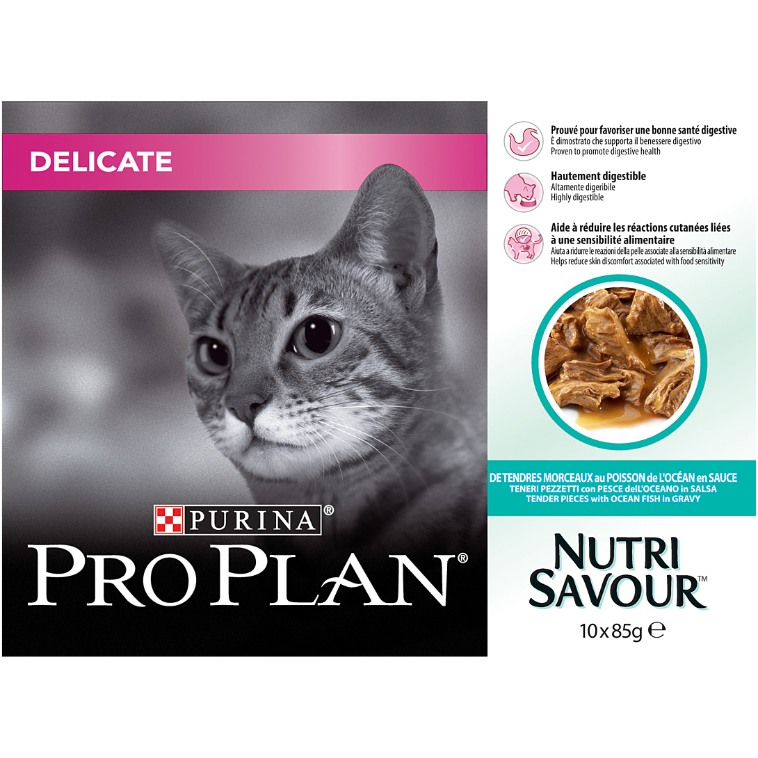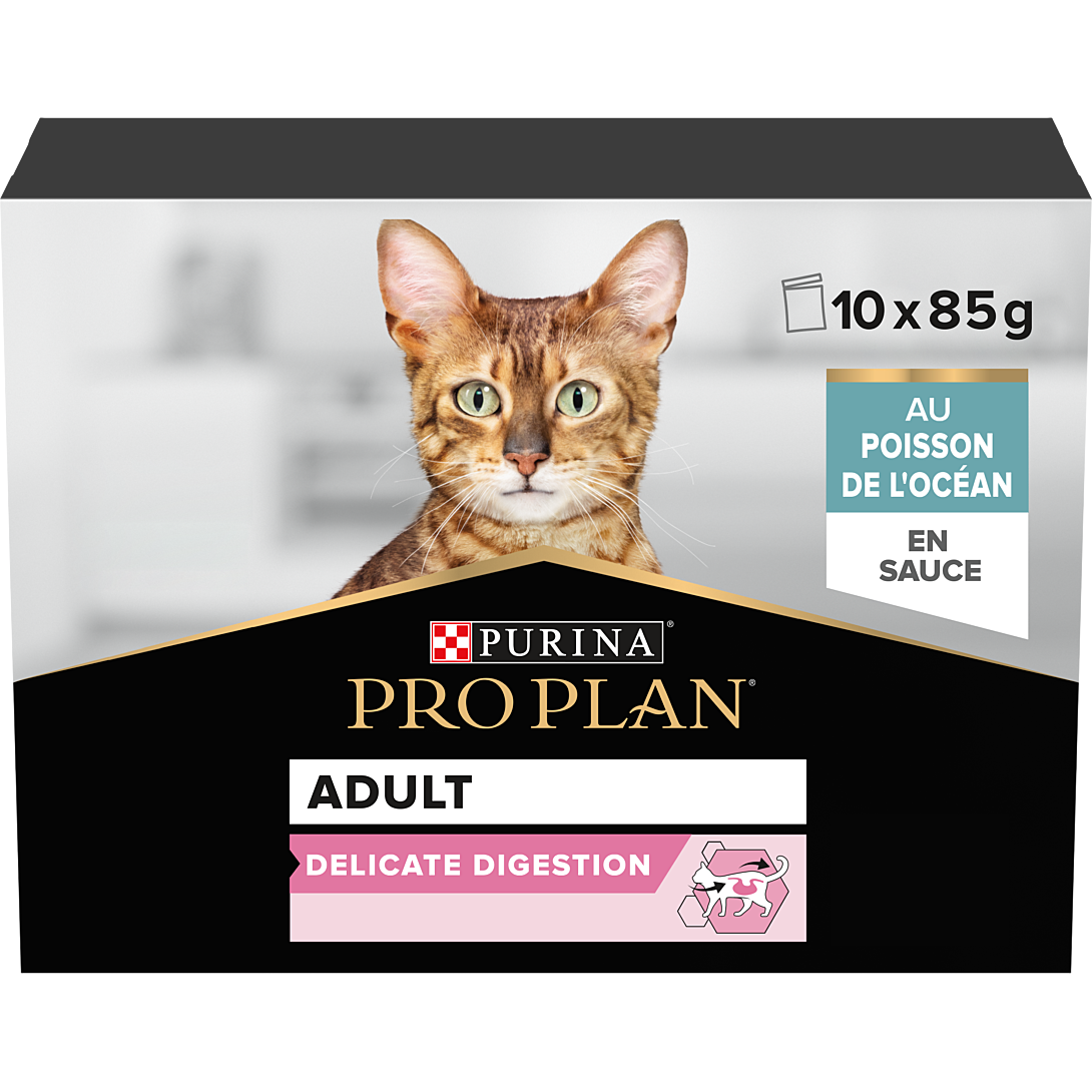 | Libellé | PRO PLAN Adult Delicate Digestion Poisson Océan Sauce 10x85g Pochons pour chat adulte |