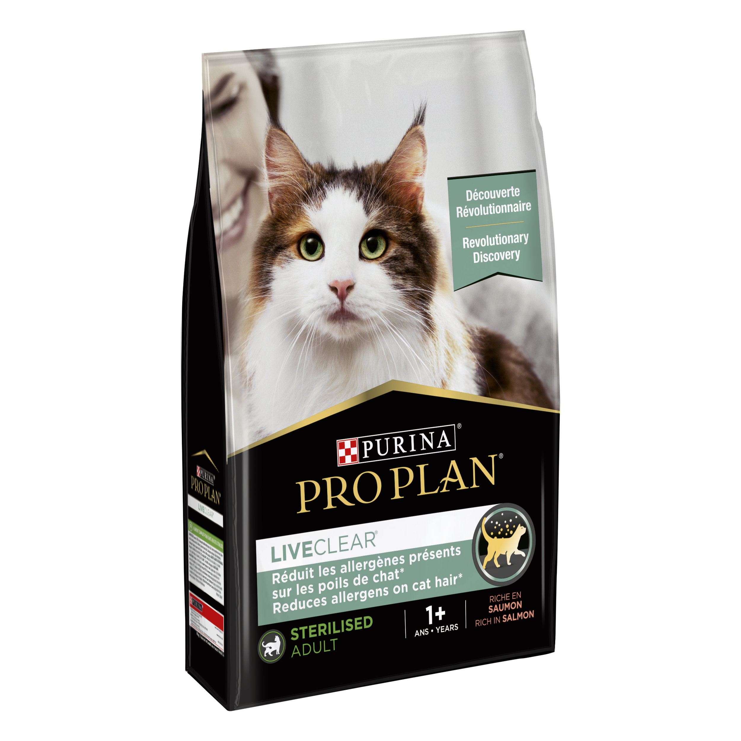 Après dix ans de recherche, Purina a fait une découverte révolutionnaire en matière de nutrition. Les allergènes de chat peuvent limiter les interactions entre les chats et ceux qui les aiment. PURINA® a identifié une protéine spécifique issue de l'œuf pouvant réduire sans risque la présence de Fel d1, l'allergène majeur sur les poils de chat. Les allergènes sont réduits en moyenne de 47% après trois semaines d'alimentation quotidienne*. En nourrissant votre chat chaque jour avec PRO PLAN® LIVECLEAR®, vous lui offrez une excellente nutrition, ainsi que l'extraordinaire bénéfice de réduire les allergènes sur ses poils. * Satyaraj E. Et al, Immunity Inflammation and Disease. 2019; 7(2):68-73: 10 semaines d'étude sur 105 chats ayant démontré une réduction de 47% (basé sur le pourcentage moyen de réduction individuel) entre les semaines 3 et 10.