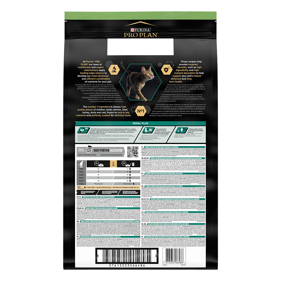 | Libellé | PRO PLAN Sterilised Adult RENAL PLUS Lapin 10kg - Croquettes complètes pour chats adultes stérilisés |
