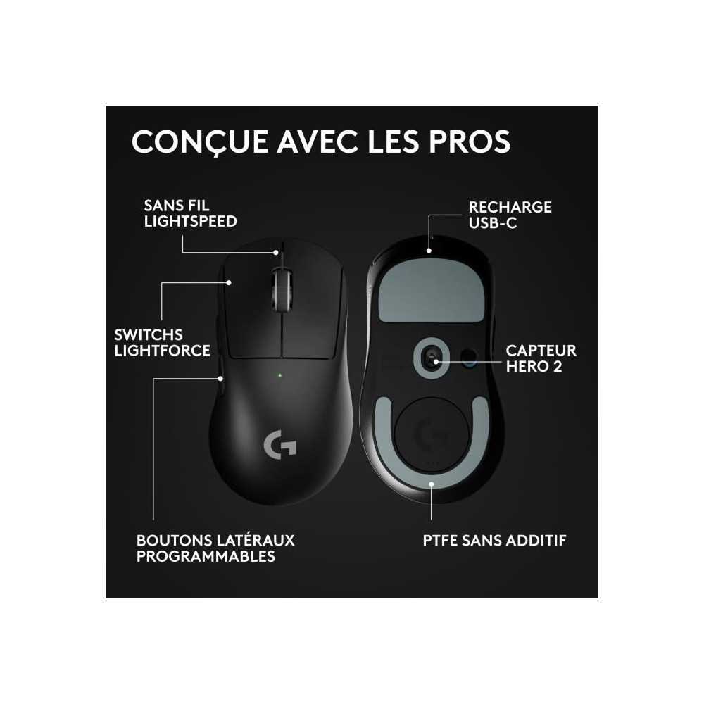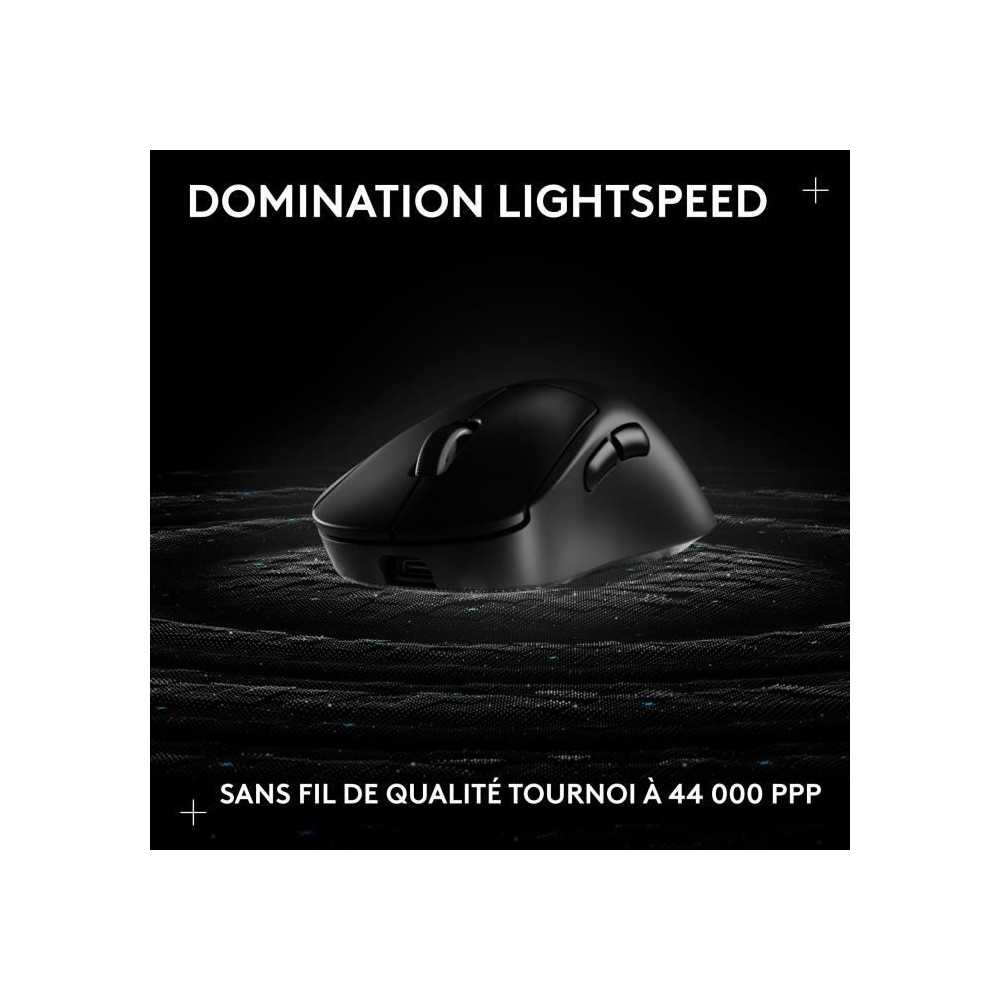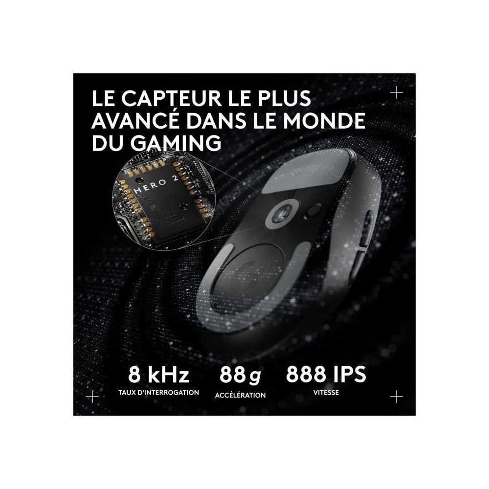 | Plus produit | Légère (88 g), capteur HERO 2 jusqu'à 44 000 PPP, LIGHTSPEED RF 2,4 GHz faible latence, switches LIGHTFORCE, patins PTFE pour glisse, 5 boutons programmables, molette cliquable |