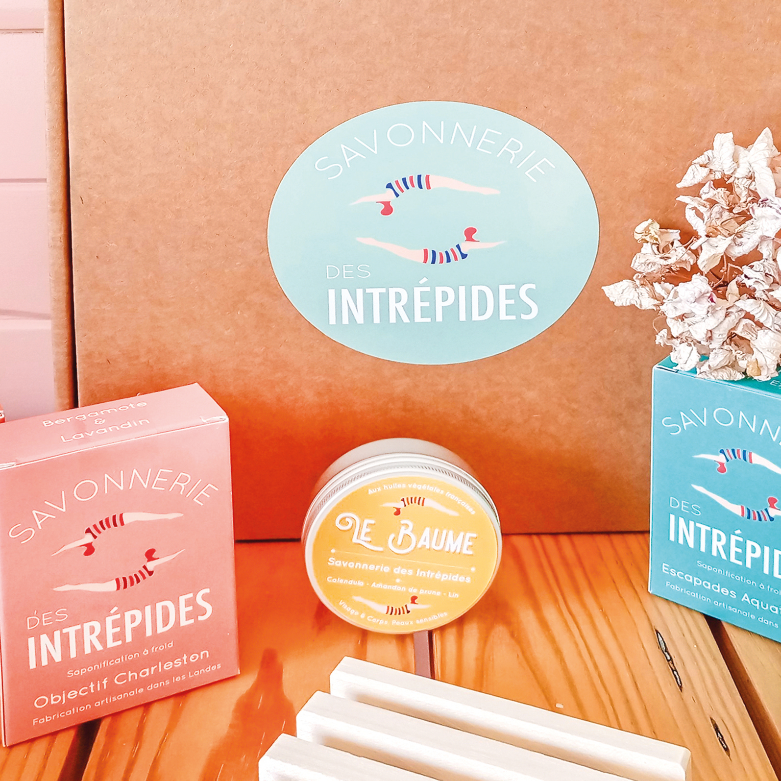 Quoi de mieux que des produits bio et naturels pour prendre soin de votre corps ? La Savonnerie des Intrépides vous propose un coffret de cosmétiques pour tous types de peaux aux noms évocateurs. Profitez des bienfaits d’un baume pour les peaux sensibles et irritées, d’un savon apaisant et hydratant Objectif Charleston, d’un savon relaxant et hydratant Au Pied de l'Atlas, d’un savon rafraîchissant, purifiant et tonique Escapades Aquatiques et enfin d’un savon dépaysant et hydratant Virée en Ambassador. Pour présenter joliment ces petits pavés délicieusement parfumés, un porte-savon en érable non traité et fabriqué en France complétera cet ensemble. Conçus à partir de matières premières locales, ces savons réalisés artisanalement dans les Landes vous offrent le meilleur tout en respectant l’environnement. L’univers rétro des années 20 est un joli clin d’œil à l’esprit d’aventure et de liberté de cette époque, reflétée dans l’énergie créatrice de cet atelier au service de votre bien-être !