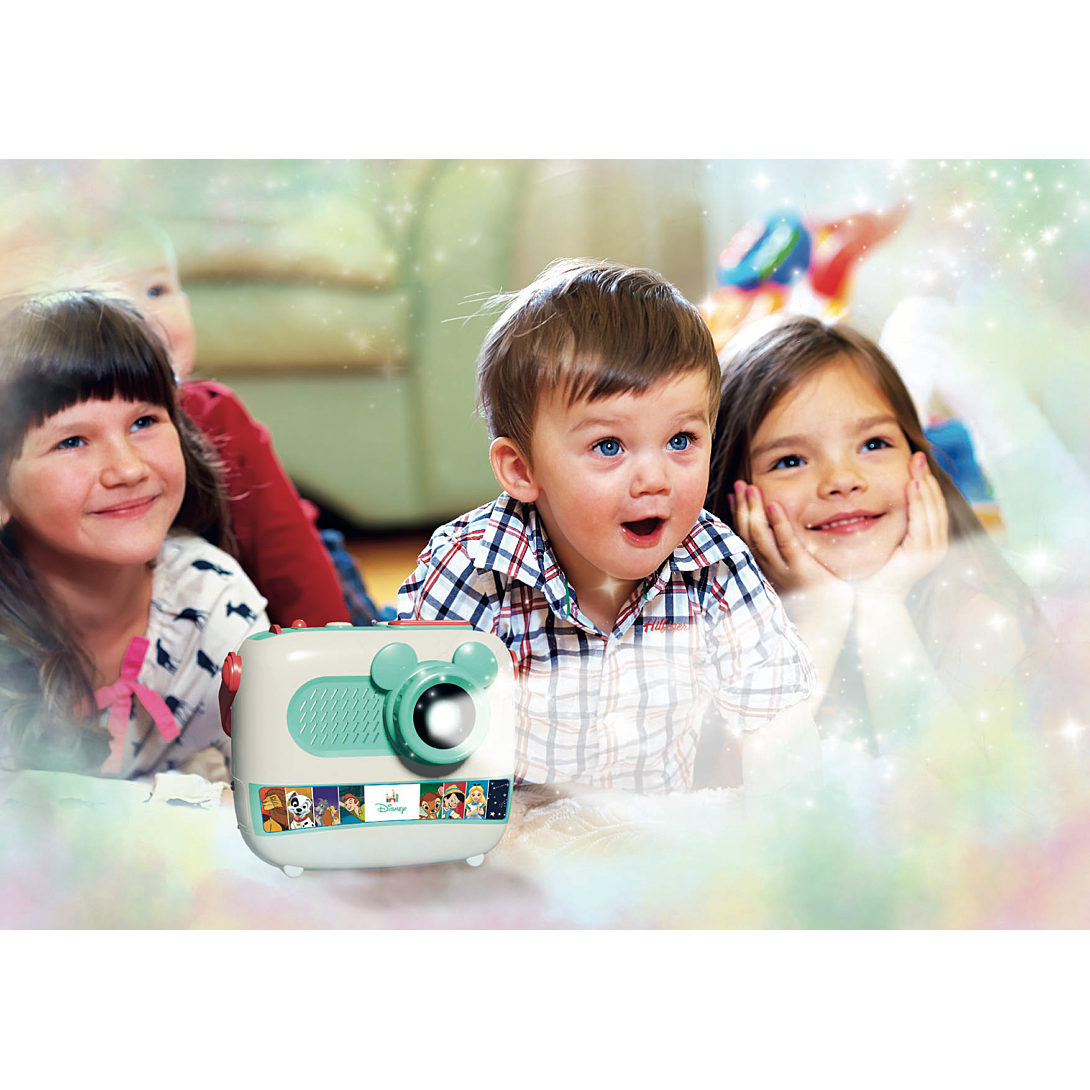 • Un conteur d’histoires innovant, avec un projecteur pour captiver l’enfant pendant l’écoute avec les images des personnages classiques de Disney. • Les enfants pourront écouter 8 histoires différentes en regardant les images colorées projetées sur le mur. • Le conteur d’histoires est doté d’un haut-parleur qui garantit une bonne qualité sonore. • Un jeu parfait pour s'amuser en journée ou pour le moment du coucher.