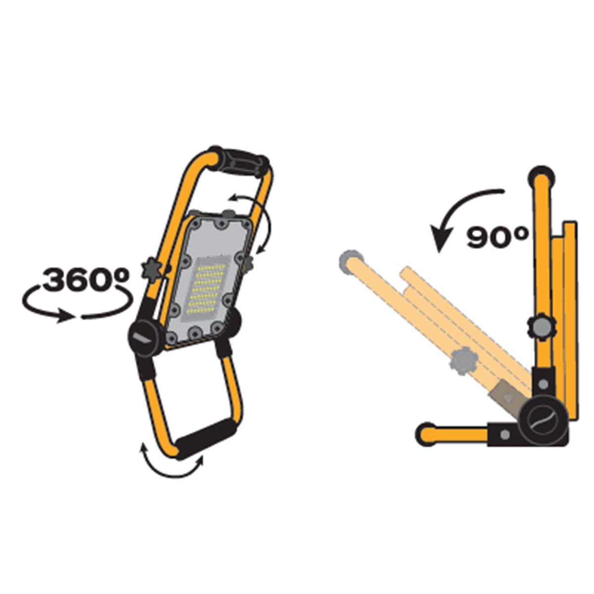 Cette lampe portable ASLO au design compact et léger est facile à transporter partout. Le support de fixation du projecteur permet de le faire pivoter horizontalement (360º) et verticalement (90º) afin qu'il puisse éclairer parfaitement la zone de travail souhaitée.