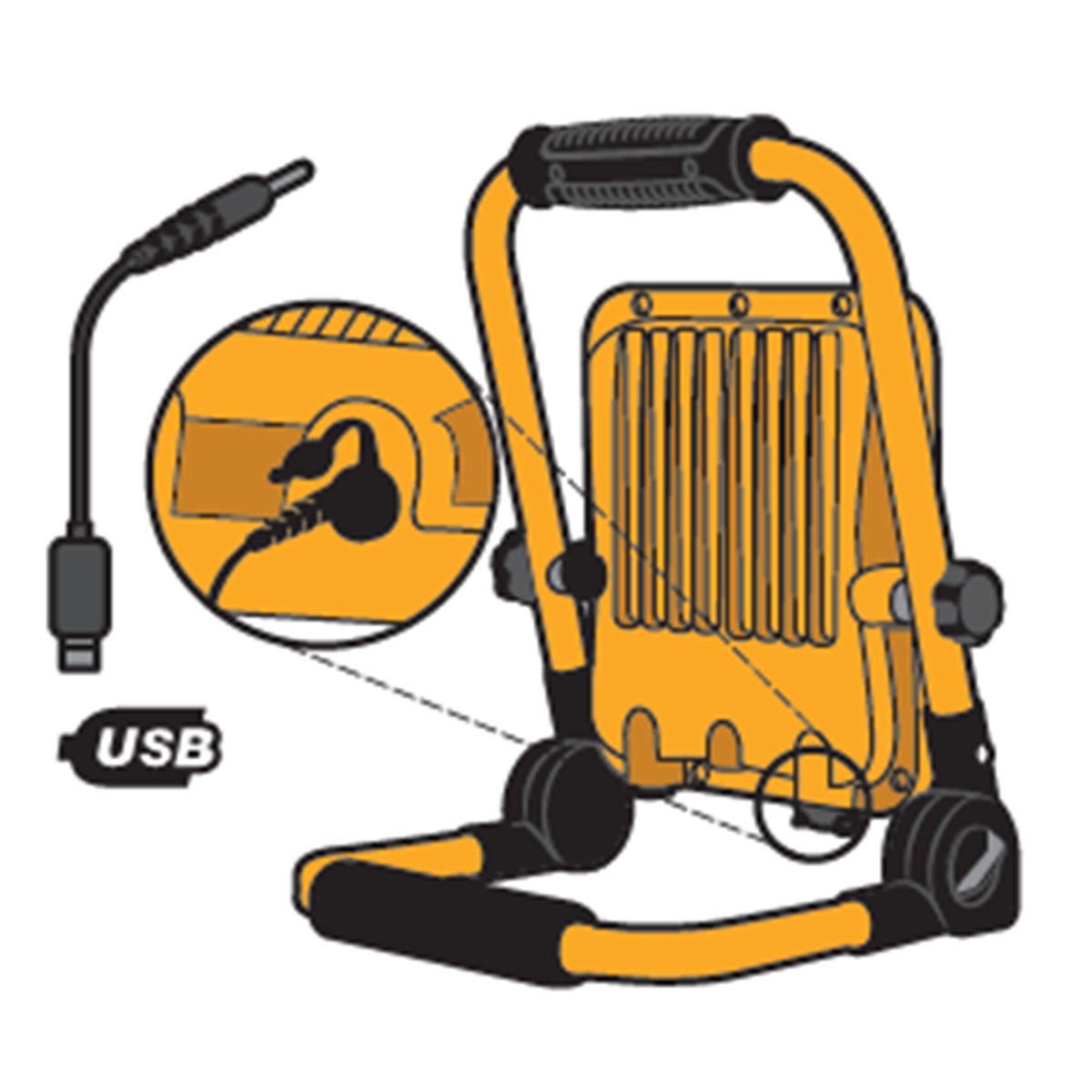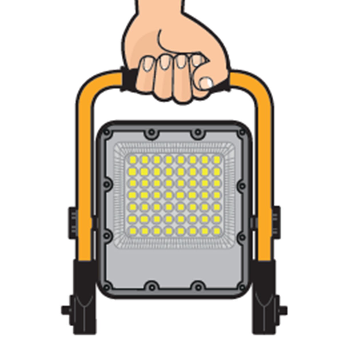 Cette lampe portable ASLO au design compact et léger est facile à transporter partout. Le support de fixation du projecteur permet de le faire pivoter horizontalement (360º) et verticalement (90º) afin qu'il puisse éclairer parfaitement la zone de travail souhaitée.