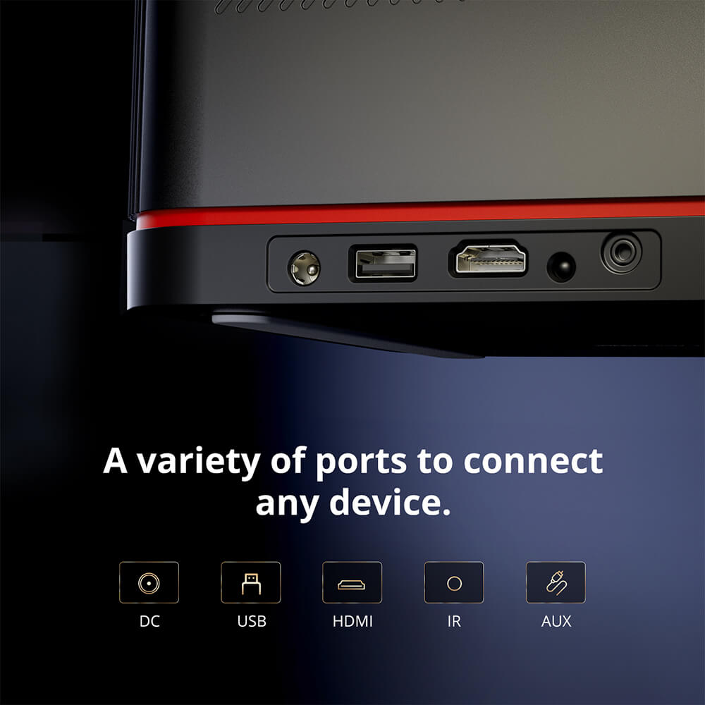 Ce projecteur est compatible avec Android, iOS, PC et autres appareils connectés au même réseau grâce à la projection d'écran sans fil en un clic. Il offre une expérience de partage fluide et gratuite avec la même taille d'écran. Équipé du Wi-Fi bi-bande 2,4G et 5G, il est compatible avec 99 % des routeurs du marché et offre des débits plus rapides et une connexion plus stable. Grâce à ses multiples ports, il se connecte facilement à divers appareils. Le port HDMI 2.1 offre une connexion plus rapide et sans latence.