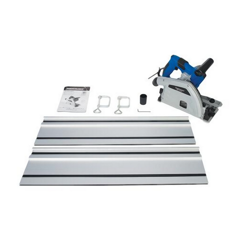 Scie circulaire plongeante avec lame 165 mm x 20 mm de 24 dents au carbure de tungstène. Rail de guidage conçu pour réaliser des coupes précises, droites et en biseau. Les 2 rails de guidage extrudés de 700 mm, faciles à assembler, permettent de créer 1 rail de guidage de 1 400 mm avec base antidérapante. Blocage de l'arbre pour un remplacement de la lame facile et rapide. Scie équipée d'un dispositif de sécurité permettant de bloquer le mode plongeant. Poignées caoutchoutées offrant maîtrise et confort. Pour la coupe des bois naturels et composites. Caractéristiques : Plage de l'angle de biseautage : 0 - 45 . Profondeur maximum de coupe : 56 mm. Vitesse à vide : 5 200 min-1. Accessoires fournis : - 1 rail de guidage, - 2 rails de guidage extrudés de 700 mm de long, - 2 serre-joints, - 1 adaptateur pour aspirateur, - 2 clés hexagonales, - 1 lame 165 mm x 20 mm avec 24 dents au carbure de tungstène.