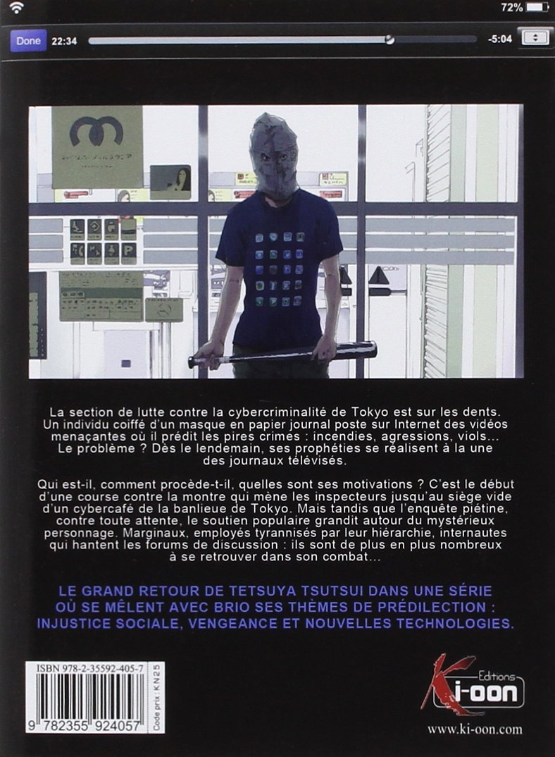 La section de lutte contre la cybercriminalité de Tokyo est sur les dents. Un individu coiffé d'un masque en papier journal poste sur Internet des vidéos menaçantes, où il prédit les pires crimes : incendies, agressions, viols. Le problème ? Dès le lendemain, ces prédictions se réalisent à la une des journaux télévisés.