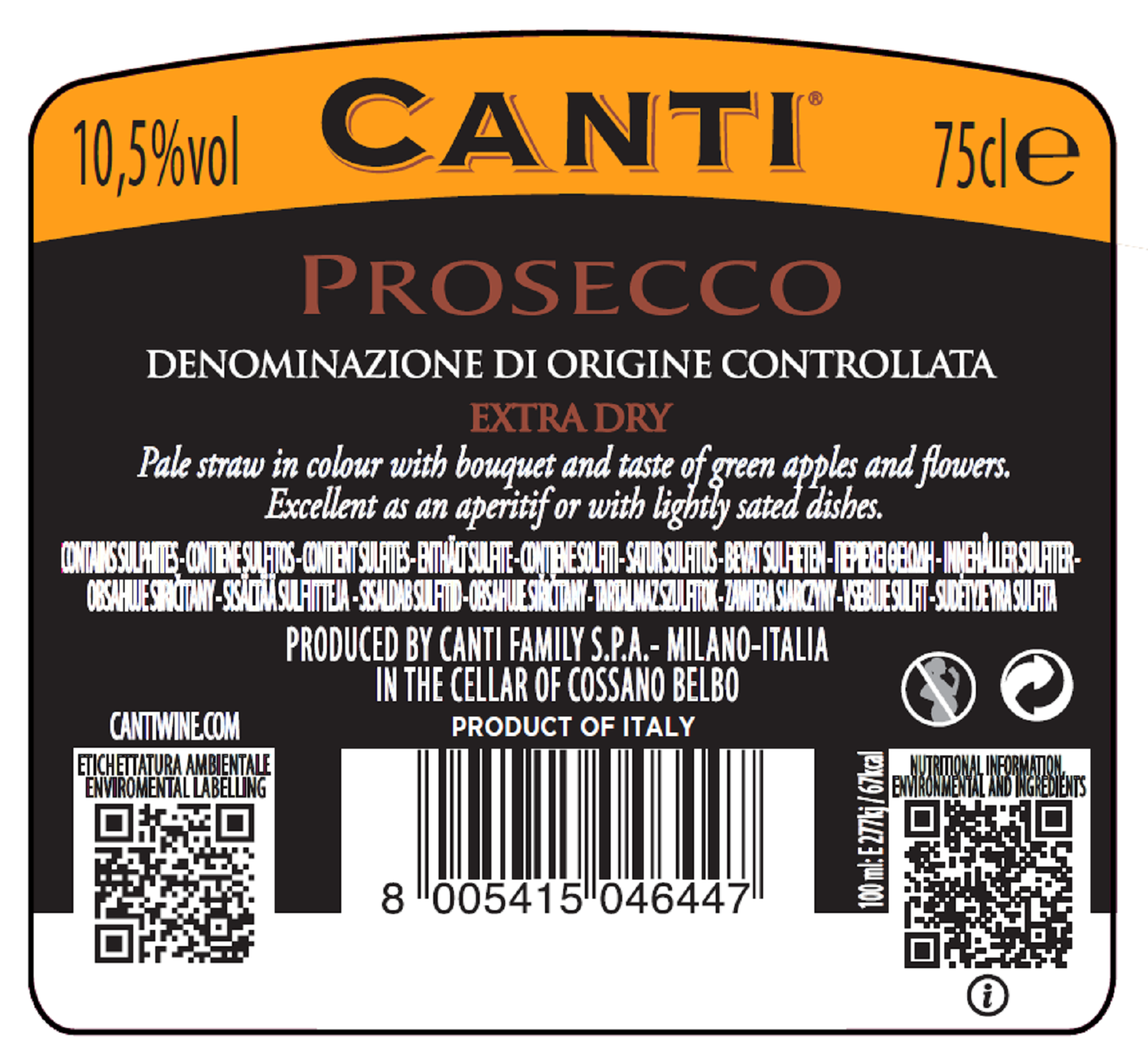 | Libellé | Prosecco Canti, Italie - Extra-Sec, 2023 - 75 cl |