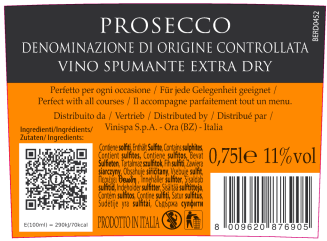 | Libellé | Prosecco Fonte Spumante, ITALIE - Extra Dry - 75 cl |