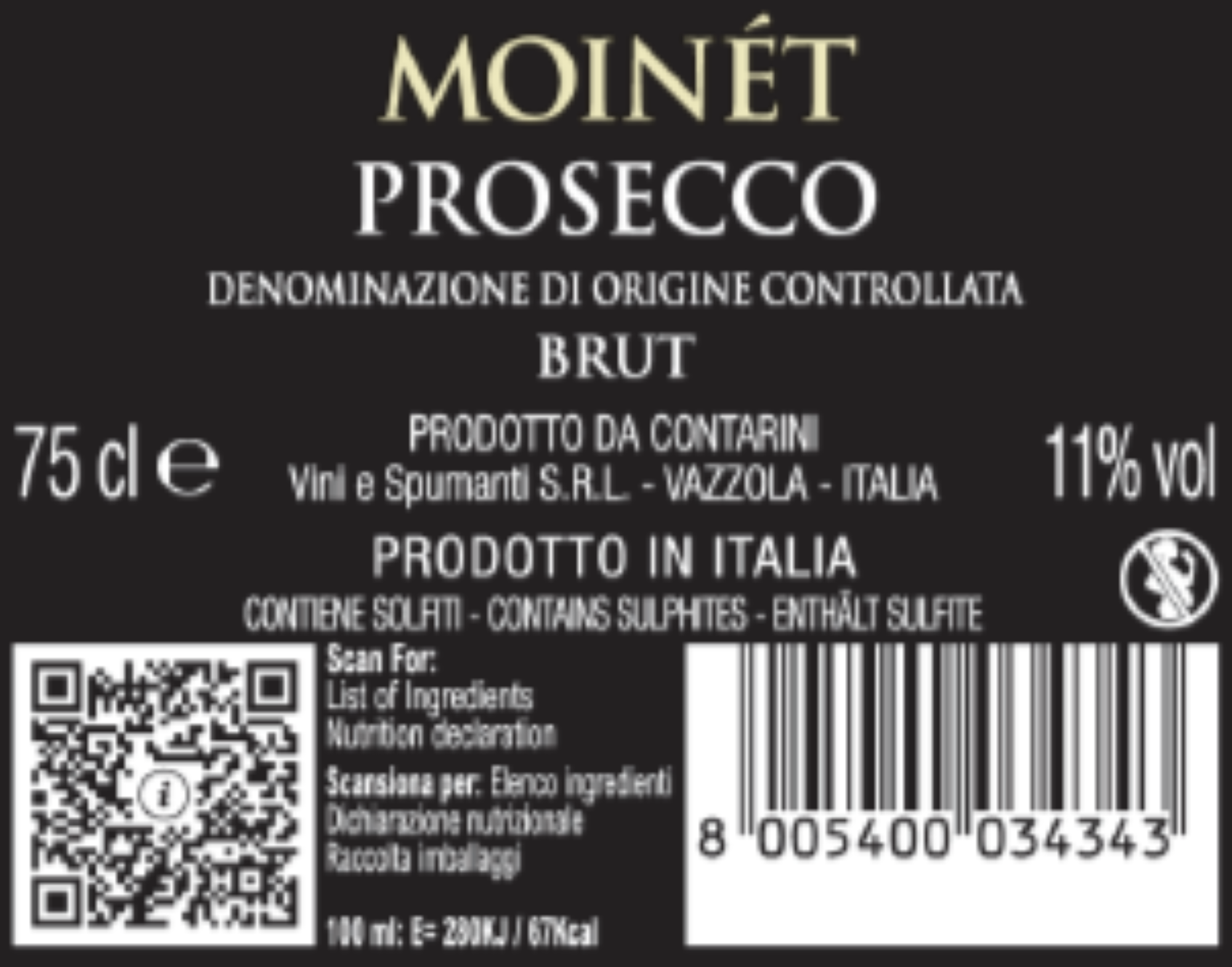 | Libellé | Prosecco Moinét, ITALIE - Brut - 75 cl |