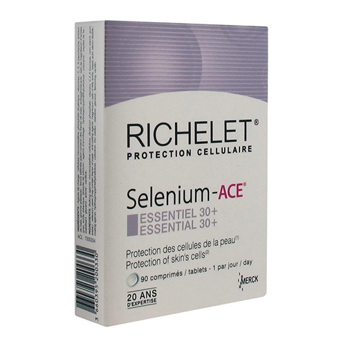 Richelet Protection Cellulaire Selenium-Ace Essentiel 30+ 90 Comprimés est un complément alimentaire pour la protection cellulaire qui associe : - du sélénium : oligo-élément qui contribue à protéger les cellules de l'organisme contre les dommages oxydatifs pouvant être causés par la pollution, le stress, les UV. Il provient d'une levure enrichie pour une meilleure assimilation par l'organisme. - les vitamines C et E : antioxydants capables de neutraliser les radicaux libres et protéger les cellules contre le stress oxydatif, - la vitamine A contribue au processus de différentiation cellulaire.
