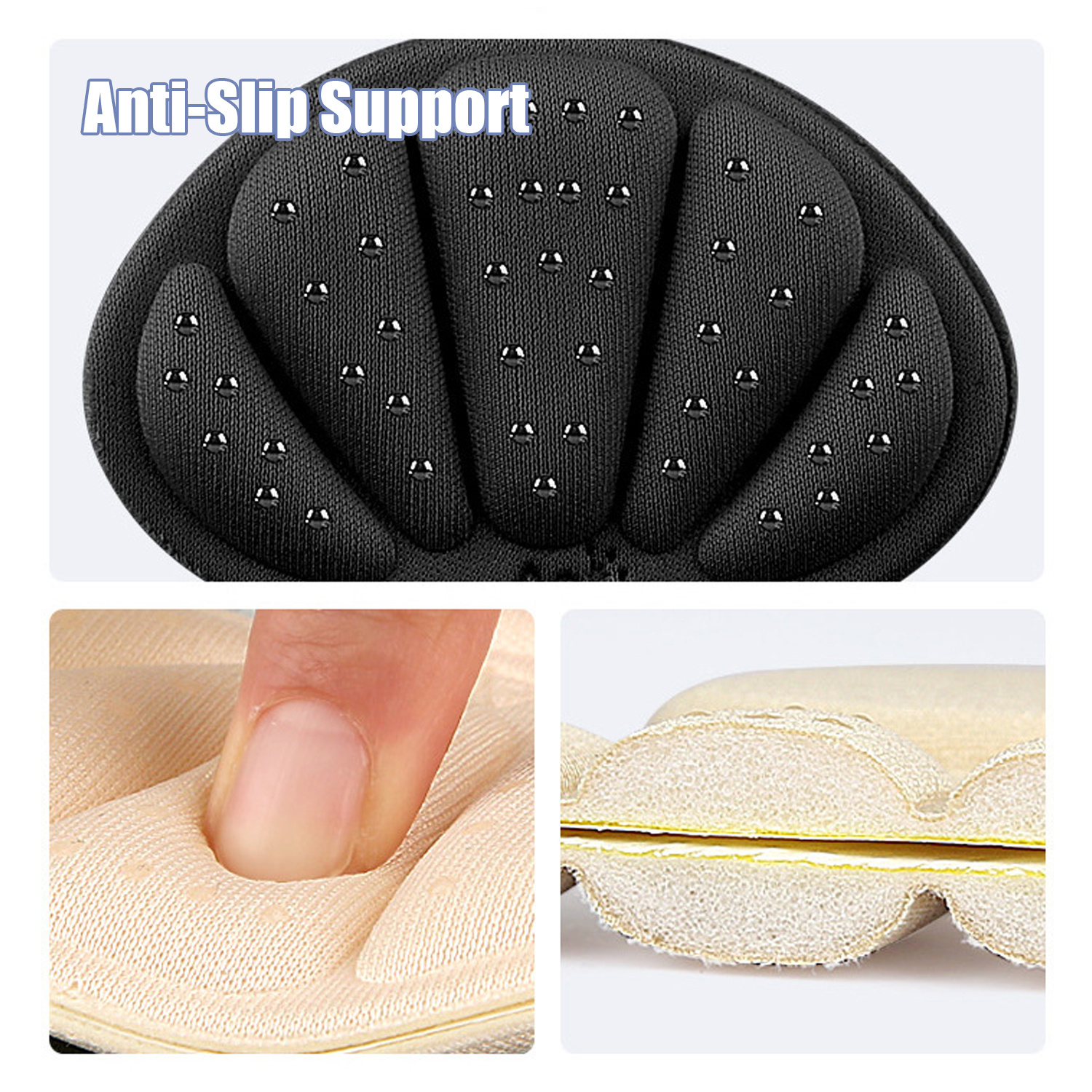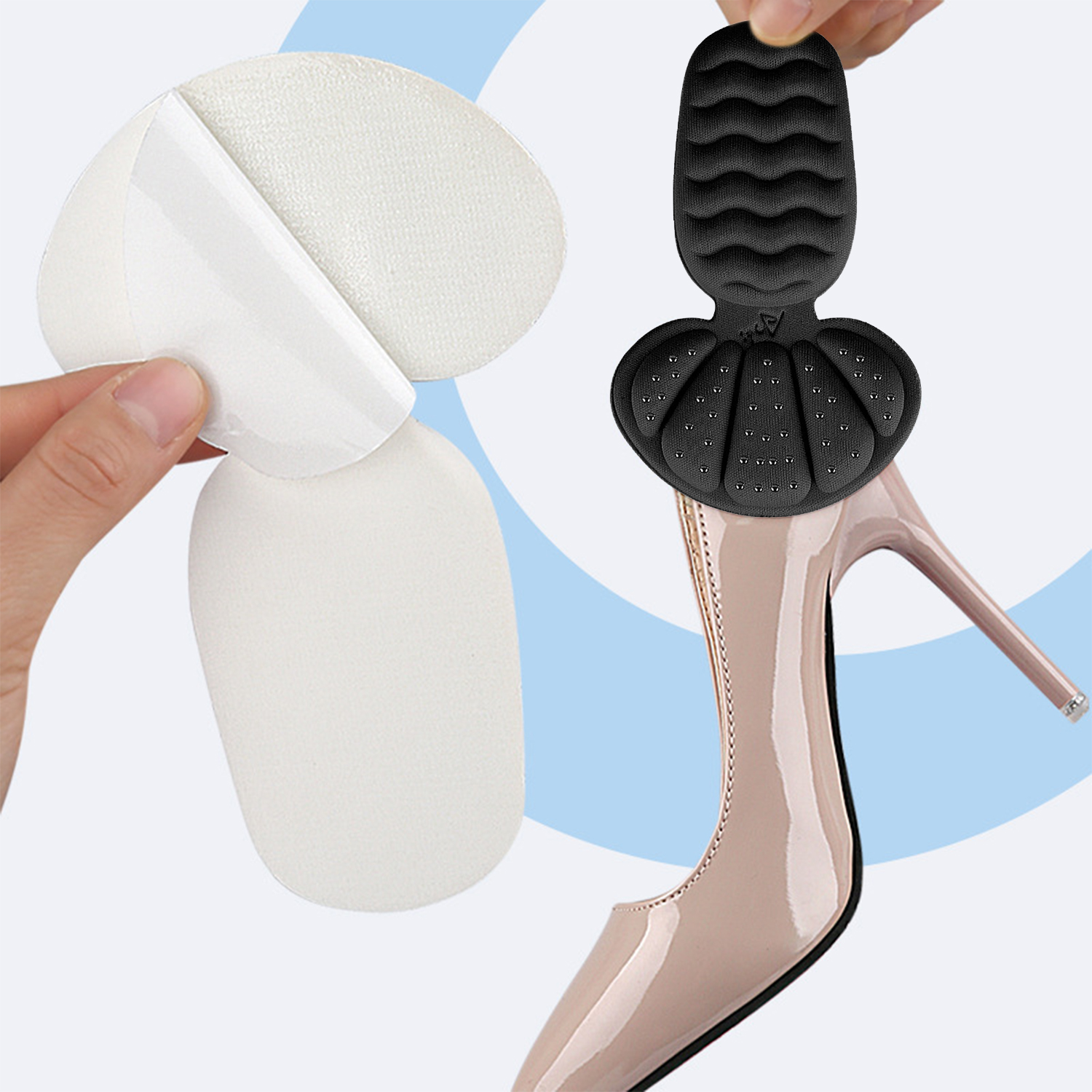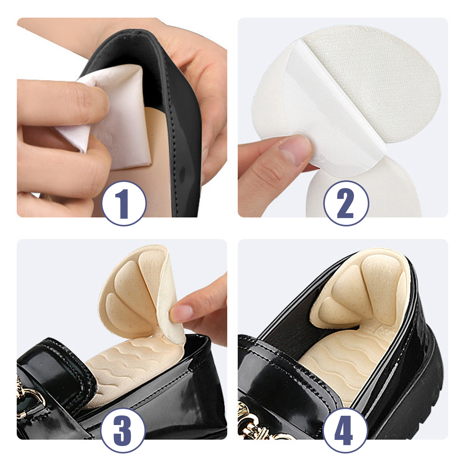 Conception autocollante : Les inserts de talon sont autocollants et faciles à appliquer. Ils sont discrets et non visibles.