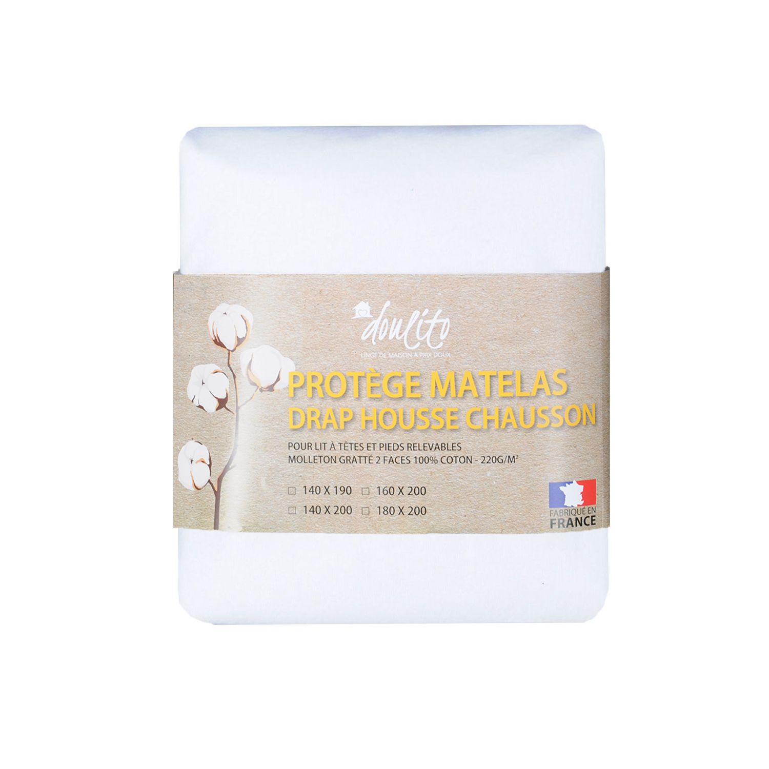 | Libellé | Protège matelas imperméable 160x200 cm lit electrique Doulito - Made in France - Coton |