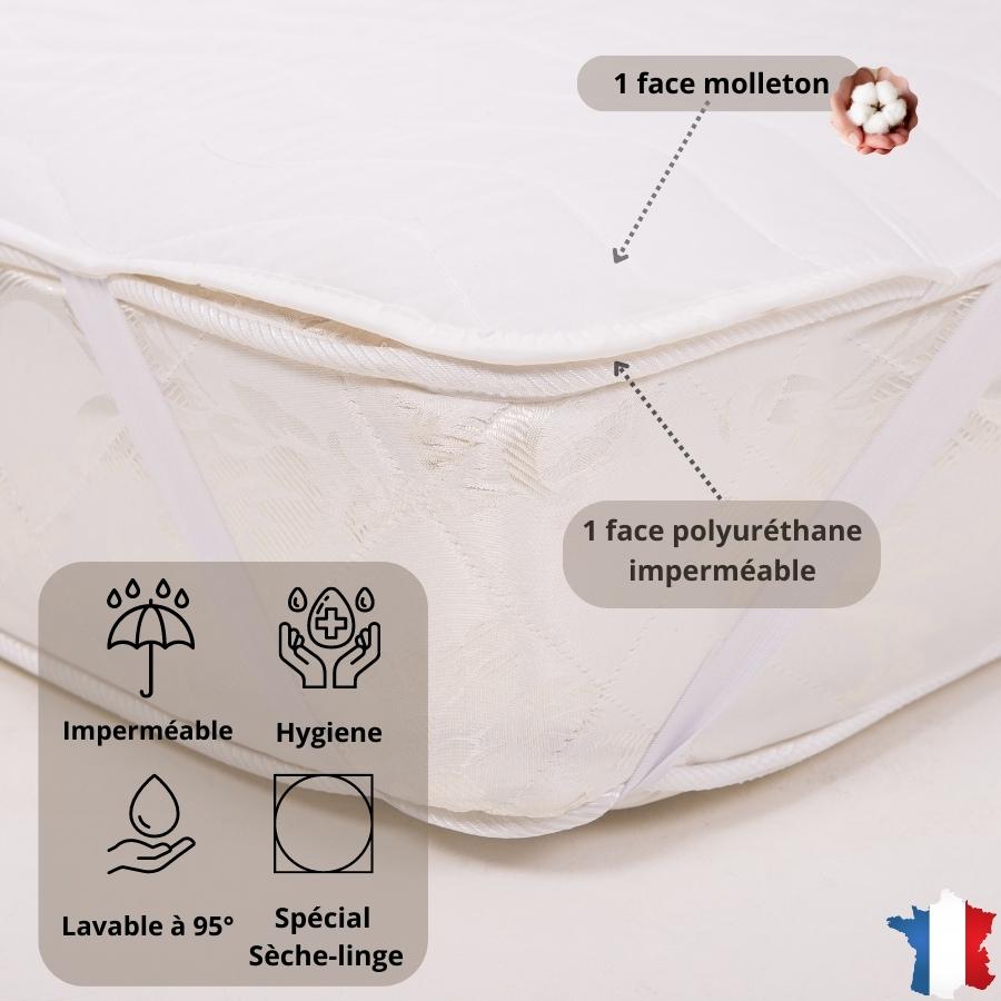 - Matière : 1 face Molleton 100% coton et 1 face Polyuréthane
