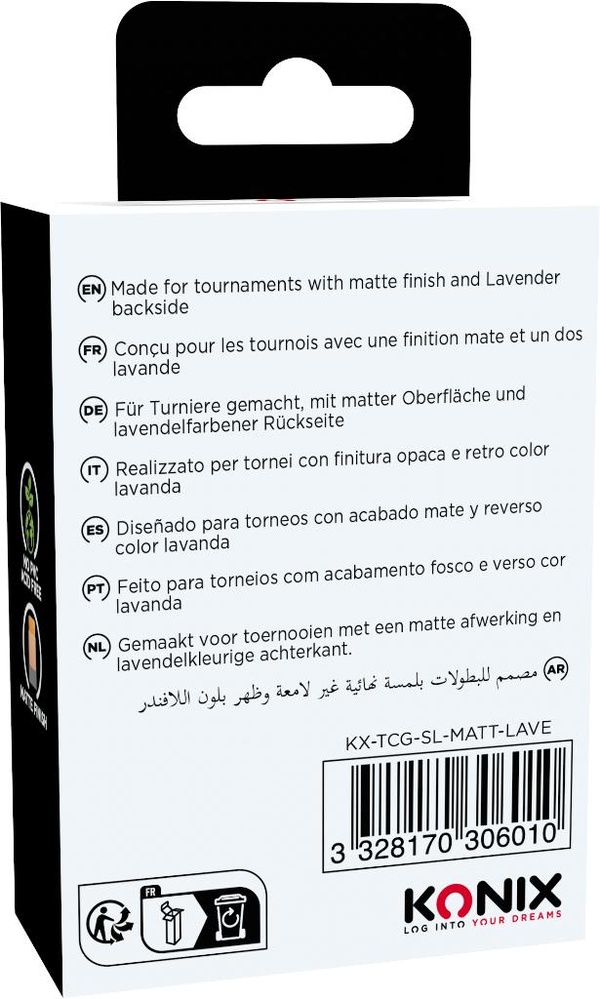| Libellé | Proteges-Cartes Lavande Mats Konix Pour TCG - 100 Pieces |