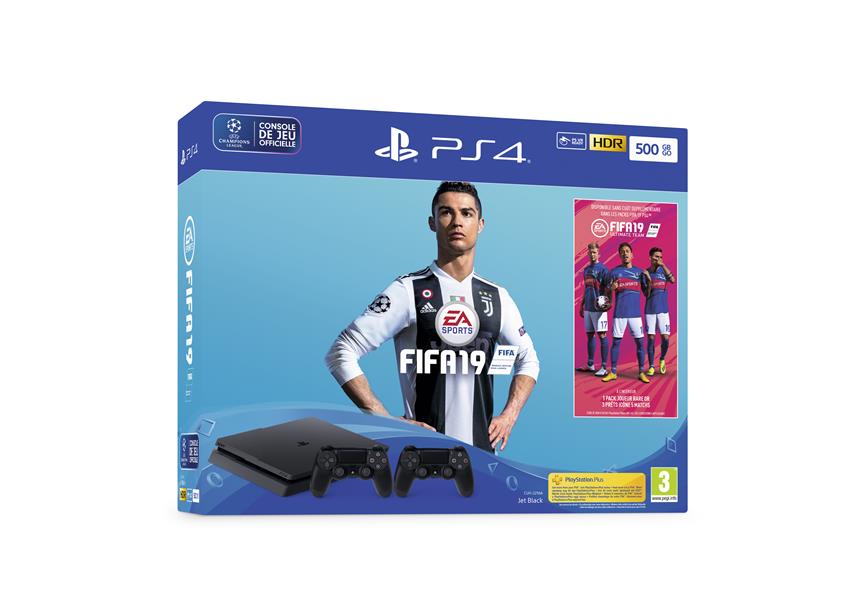 Ce pack inclut : - Une console de jeu Playstation 4 Slim 500Go F Black - Le jeu FIFA 19 en édition standard - Une seconde manette - Un coupon d'accès 14 jours au service Playstation Plus.