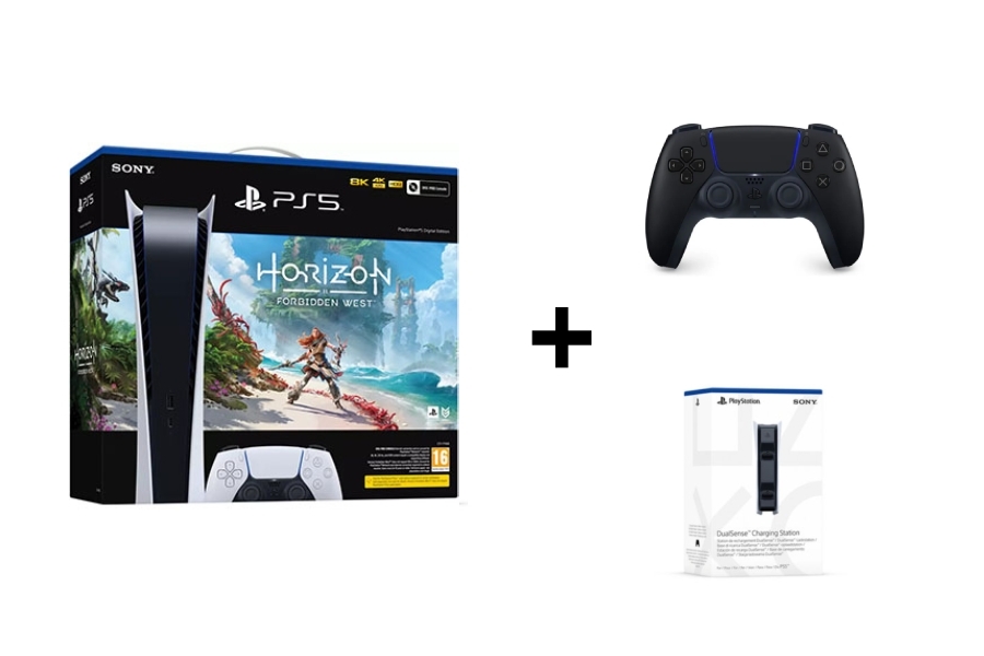 PS5 Digital Horizon FW + Manette DualSense Black + DualSense Charging Station