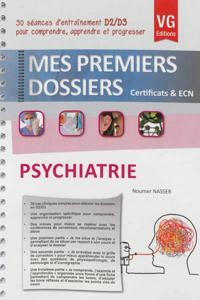 Mes premiers dossiers Certificats & ECN 30 séances d'entraînement D2/D3 pour comprendre, apprendre et progresser ! La réalisation des premiers cas cliniques médicaux peut se révéler parfois difficile car il s'agit d'un nouveau mode d'évaluation pour les D2 et les jeunes D3. Ainsi, la collection « Mes premiers dossiers » a été créée pour permettre d'une part de mieux débuter et d'autre part de mieux comprendre, apprendre et progresser dans le cadre de la préparation aux ECN et aux examens du DCEM. Réalisé par des auteurs classés parmi les meilleurs de l'ECN et validé par des spécialistes de la matière, chaque dossier est organisé comme une séance d'entraînement et comprend de façon systématique : . Une première partie « Je me situe et j'analyse » permettant de se situer par rapport à son cours et d'analyser le dossier. . Une seconde partie : « Je m'évalue avec la grille de correction » avec « La question de physiopathologie-mécanisme » (...), « La question de sémiologie » (...), « La question d'iconographie » (...) et des questions pour mieux appréhender le cours et les cas cliniques. . Une troisième partie « Je comprends, j'assimile et j'approfondis » organisée sous forme d'une fiche permettant de comprendre les bases (principes, mécanismes, physiopathologie, sémiologie,...), d'adopter les bons réflexes (...) et d'assimiler les points clés de son cours (...). Enfin, le livre sera agrémenté d'iconographies répertoriant les conseils des meilleurs des ECN (...), les éléments clés dont zéros (...), les conférences de consensus ou recommandations utilisées (...) et « Les questions pour les cracks » (...)... L'ensemble des données clés sera répertorié dans un sommaire méthodologique qui vous permettra de vous guider et de vous préparer de façon optimale à la spécialité étudiée.