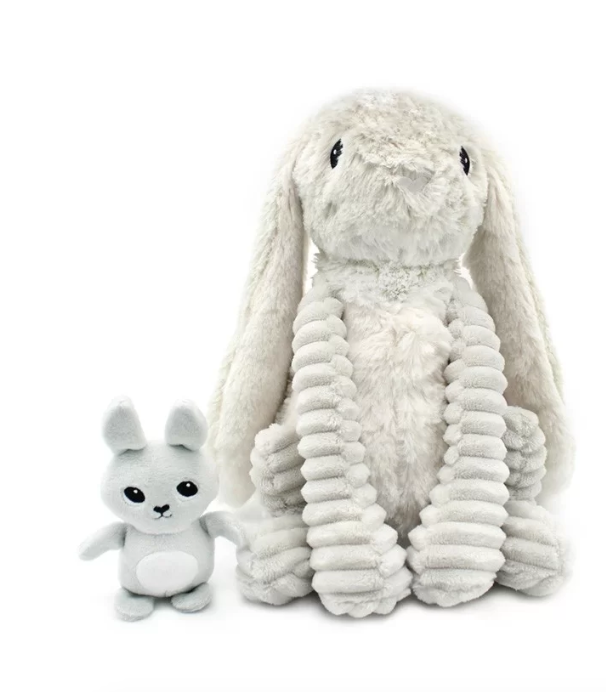 Découvrez la peluche Lapin Toudou maman de la gamme les Ptipotos, accompagnée de son bébé gris clair caché qui l'accompagnera partout! Dès la naissance.